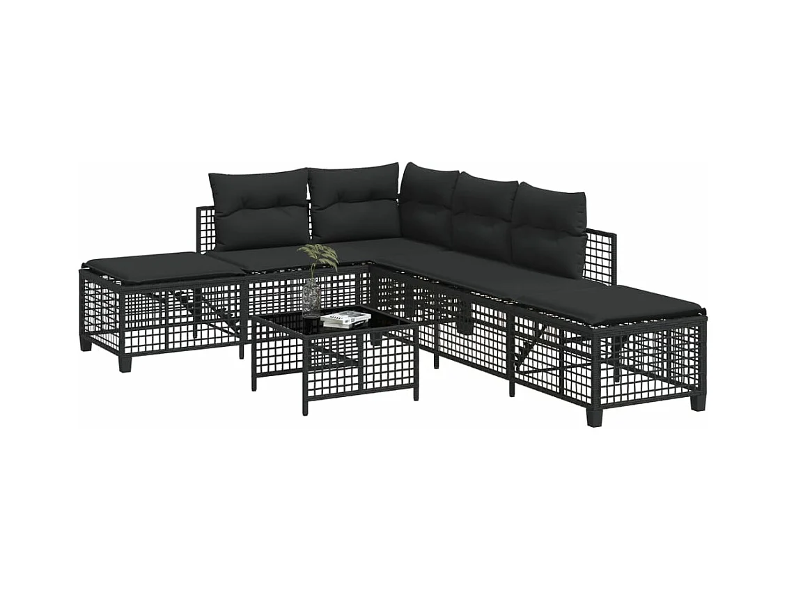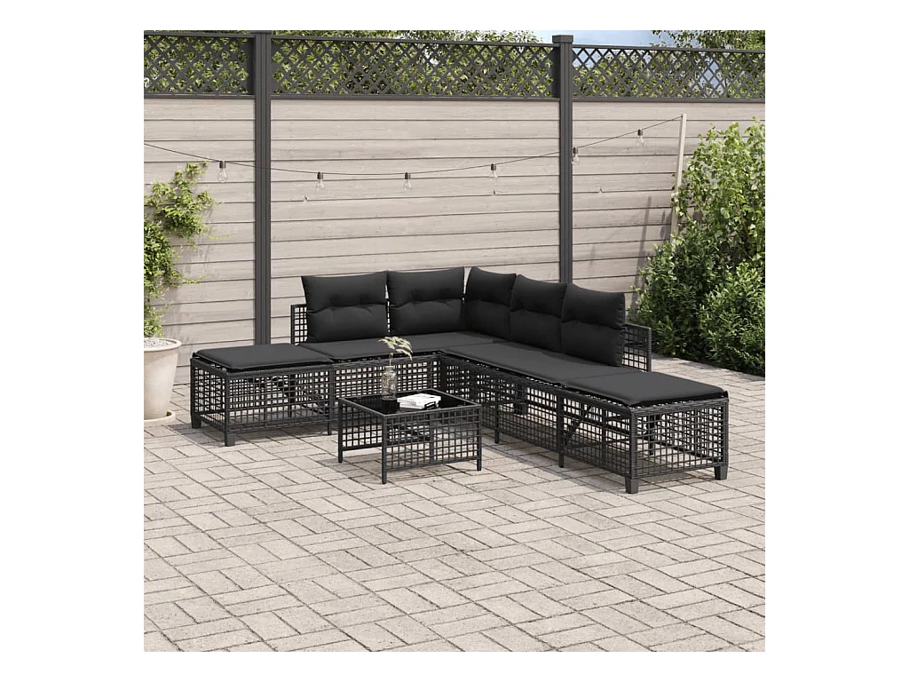 Lot de 3 Salon de jardin d'angle avec coussins noir résine tressée FR199437 FR584909
