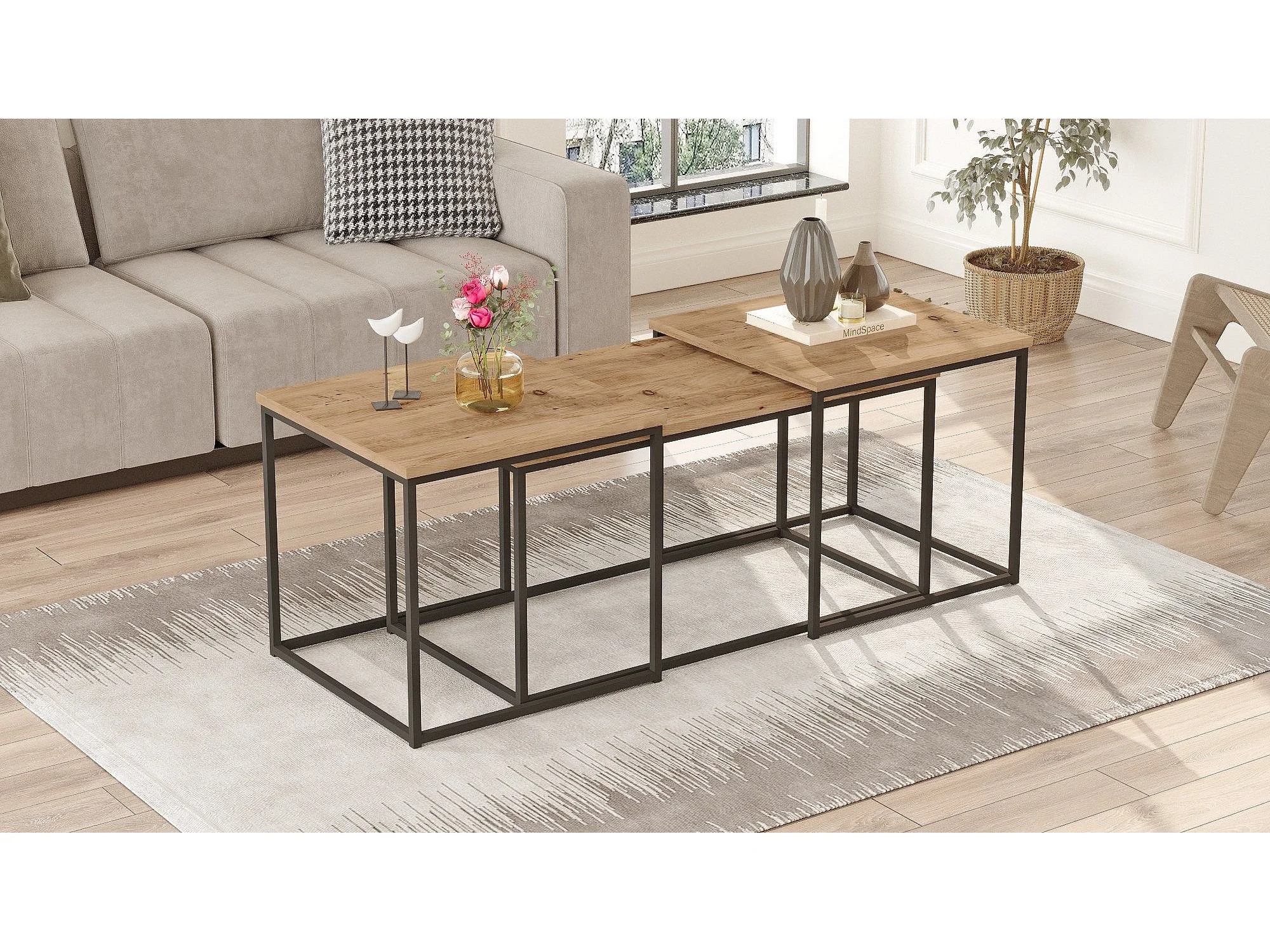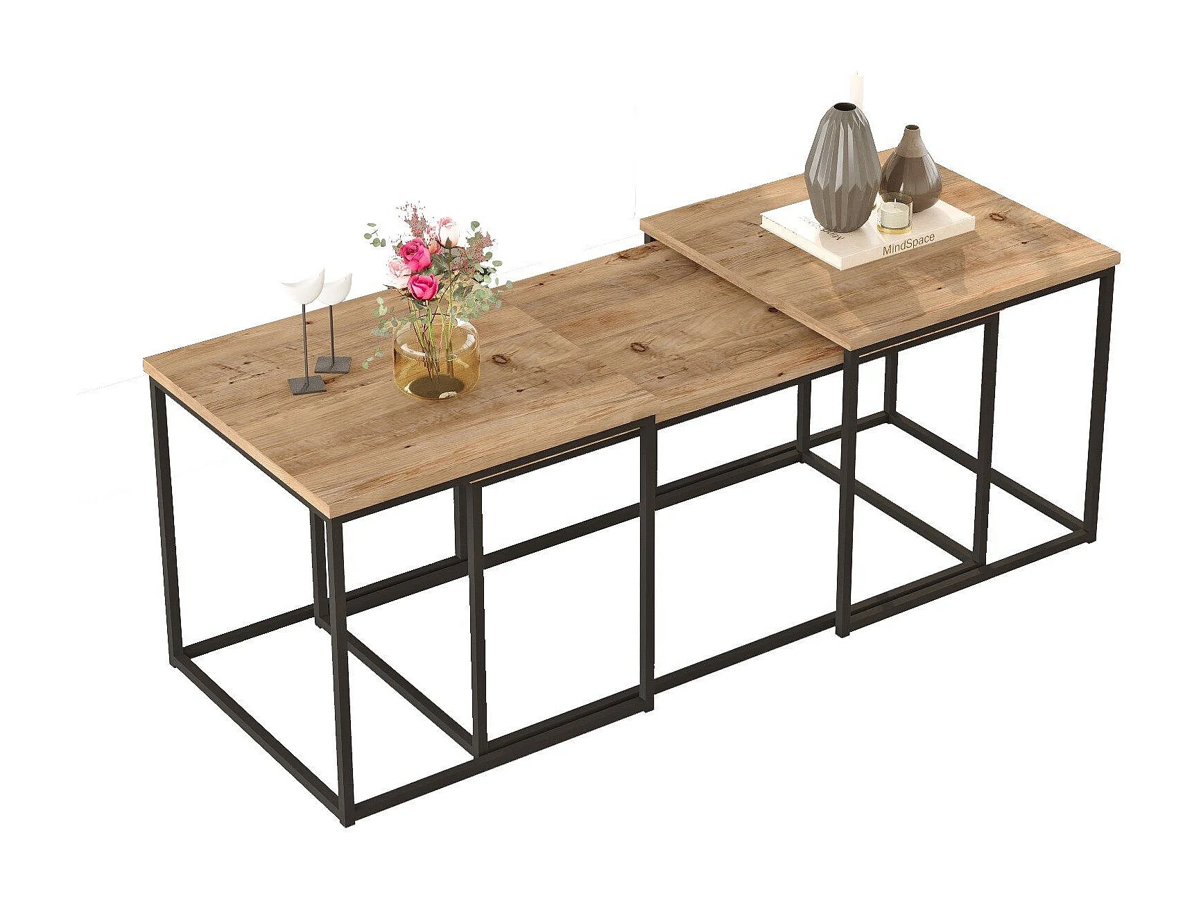 Lot de 3 tables basse en bois "VG9" - 90 x 45 x 44 cm - Pin Atlantique