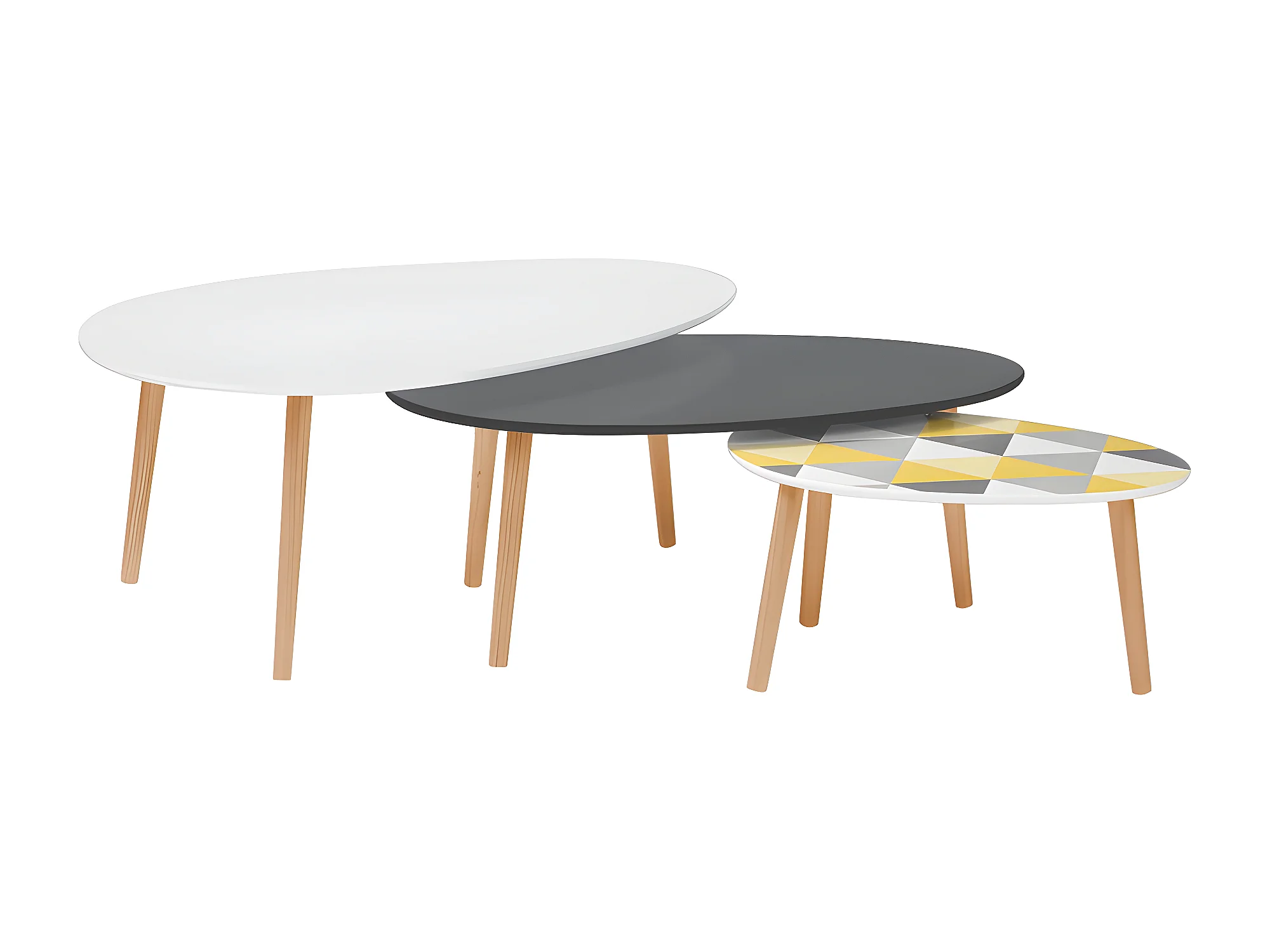 Lot de 3 tables basses gigognes scandinaves laquées motifs SEYCHELLES