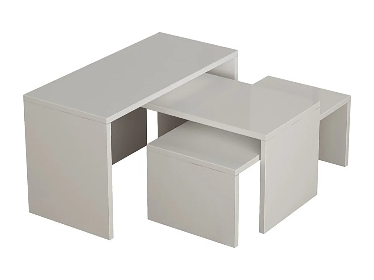 Lot de 3 Tables d'appoint gigognes, tables basses, tables multifonctions blanches différentes tailles
