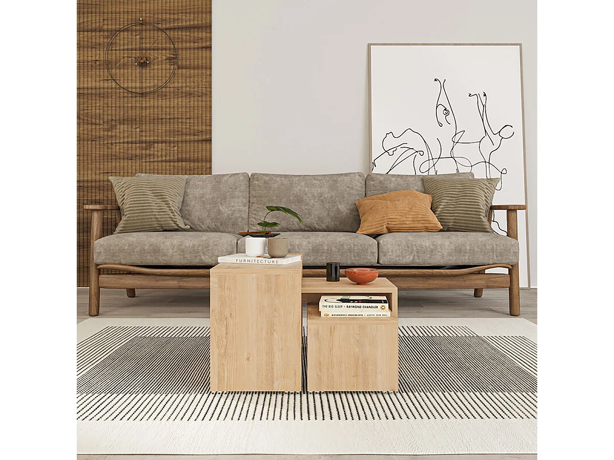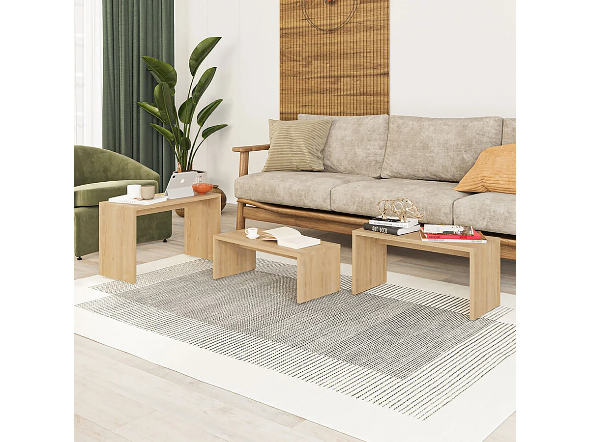 Lot de 3 Tables d'appoint gigognes, tables basses, tables multifonctions coloris Chêne différentes tailles
