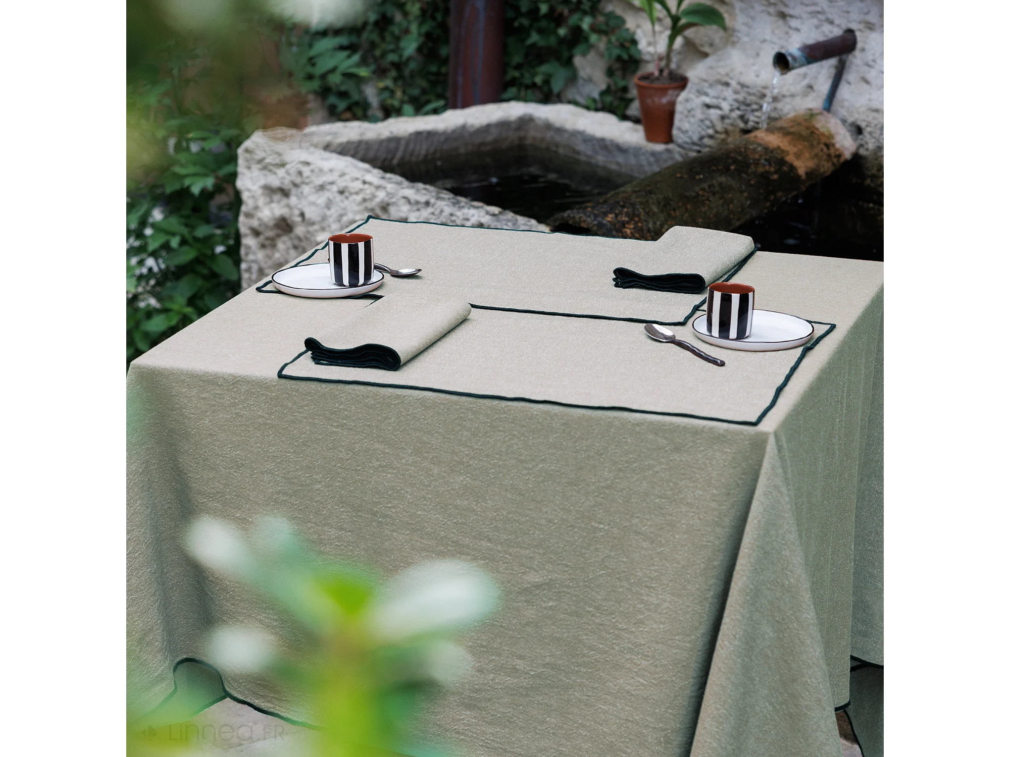 Lot de 4 galettes piquées, ronde 38cm, vert argile, avec nouettes, 100% coton, collection Panama