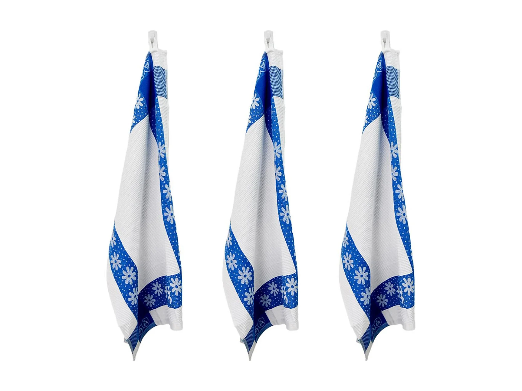 Lot de 3 torchons nid d'abeilles 50x70cm bleu - "Carré"