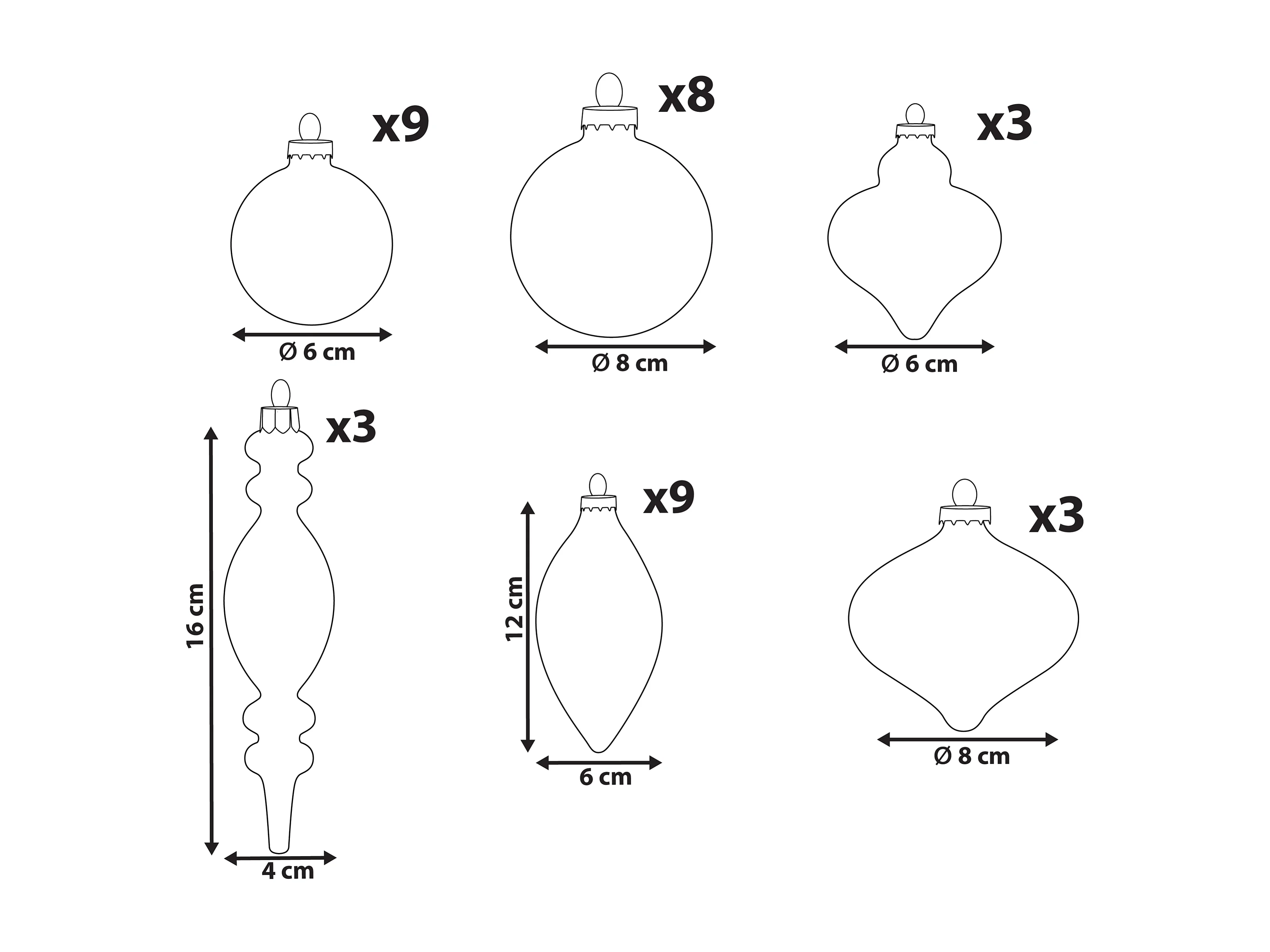 Déco de sapin de Noël Kit de 18 pièces Boules et Cimier - Turquoise