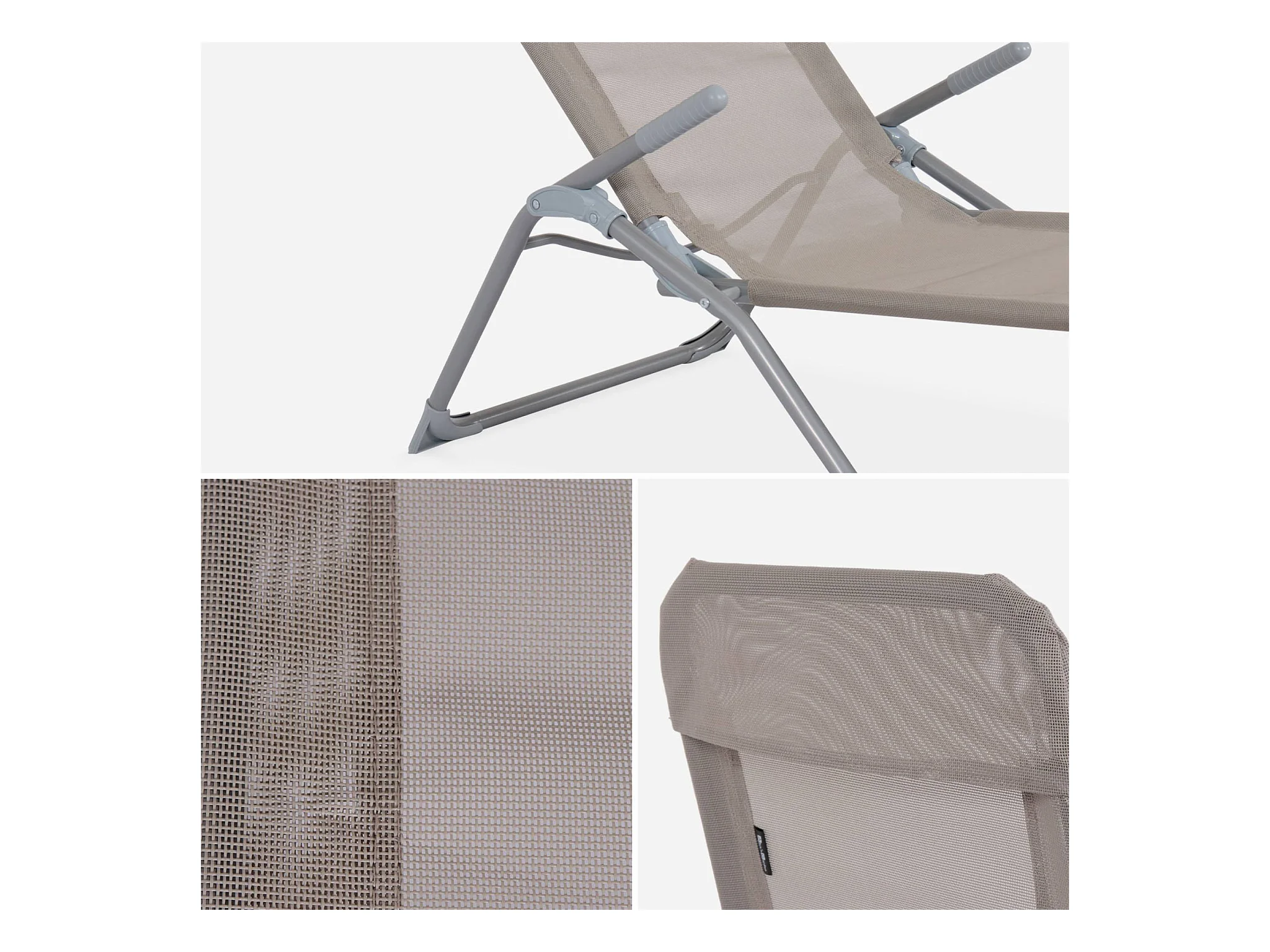 Lot de 4 bains de soleil pliants - Levito Taupe - Transats textilène 2 positions. chaises longues