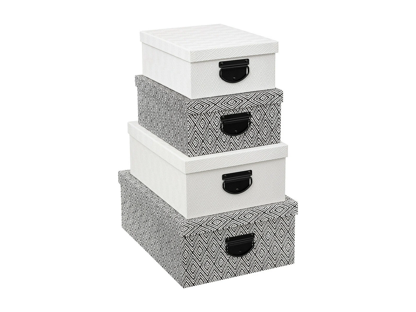 Lot de 4 Boites de rangement Blanc & Noir effet relief