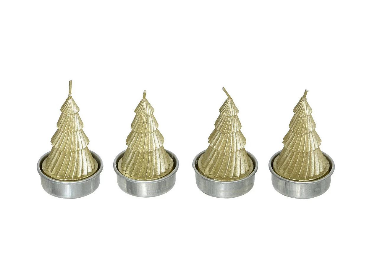 Lot de 4 Bougies de Noël déco Sapin doré pailleté