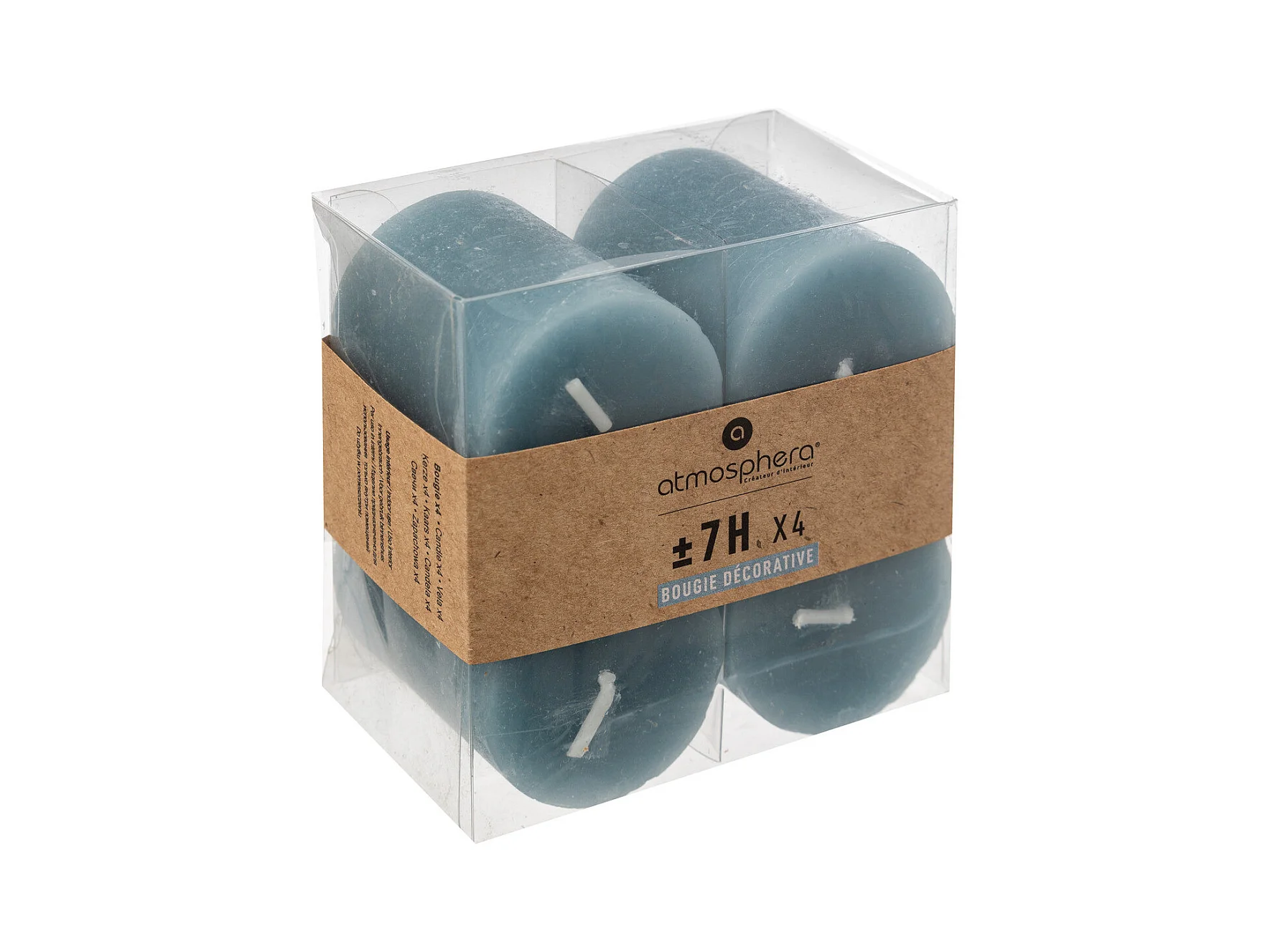 Lot de 4 Bougies décoratives Votive Rustique Bleu orage D 4.5 cm