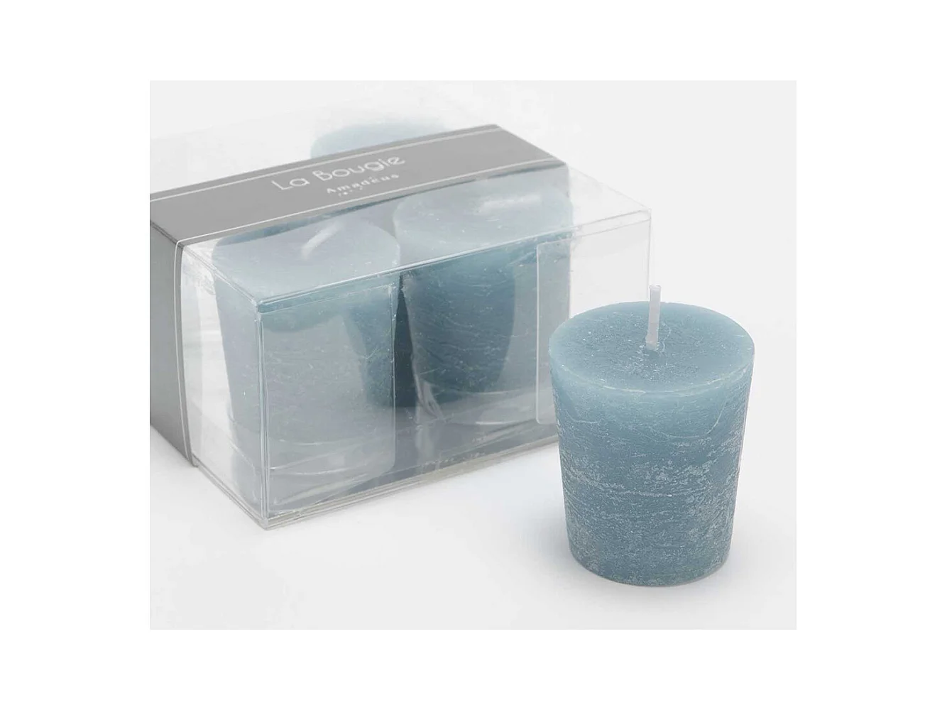 Lot de 4 Bougies décoratives Votive Rustique Bleu orage D 4.5 cm
