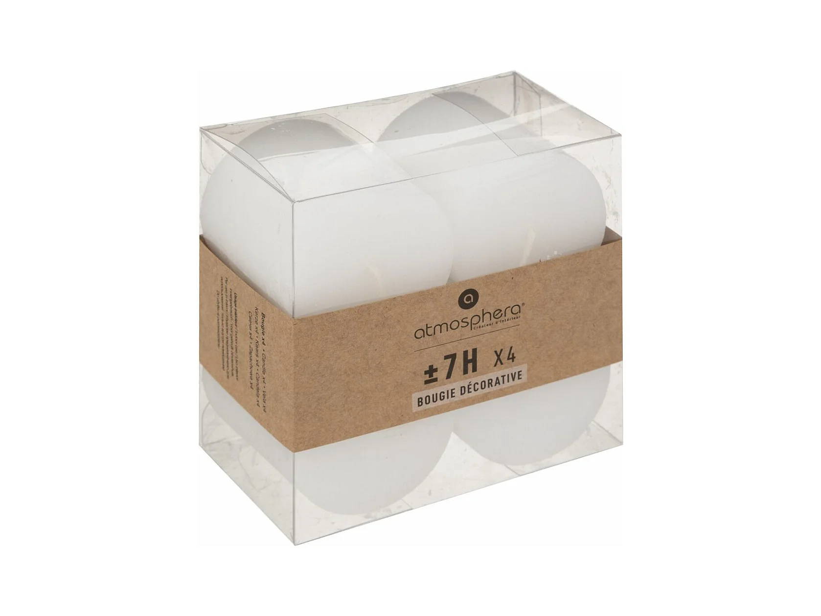 Lot de 4 Bougies Votives "Rustic" 4,5cm Blanc
