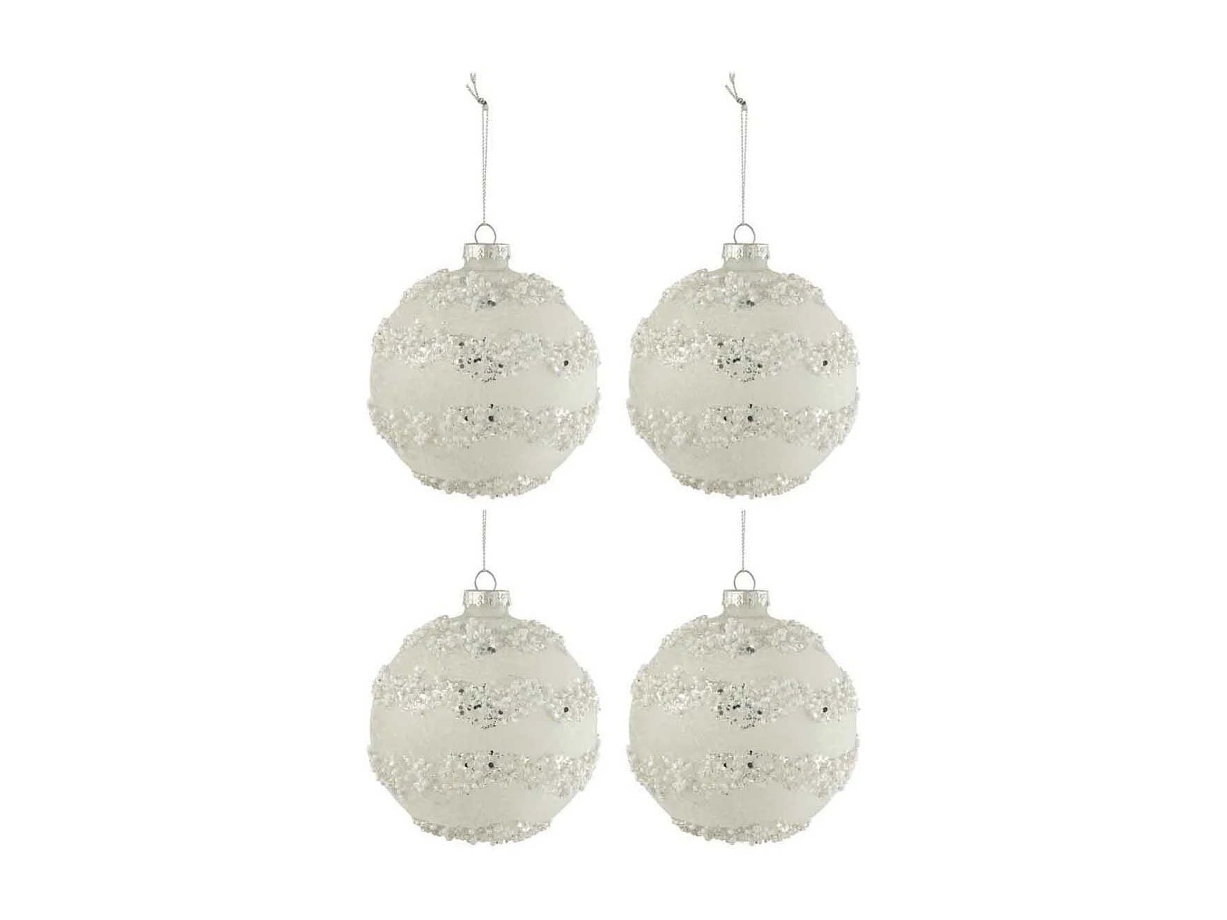 Lot de 4 Boules de Noël "Givre" 10cm Blanc