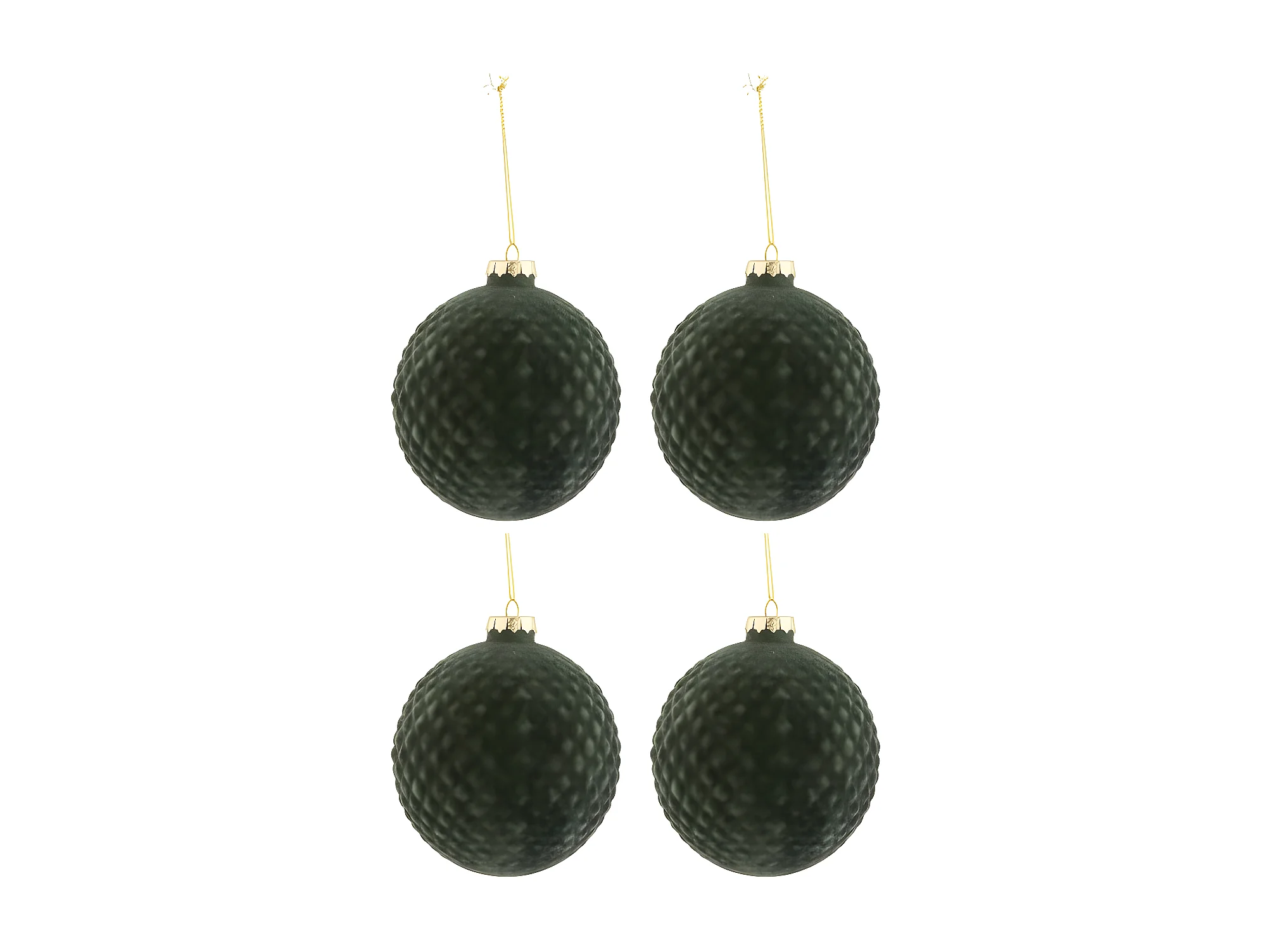 Lot de 4 Boules de Noël "Motifs" 10cm Vert Foncé