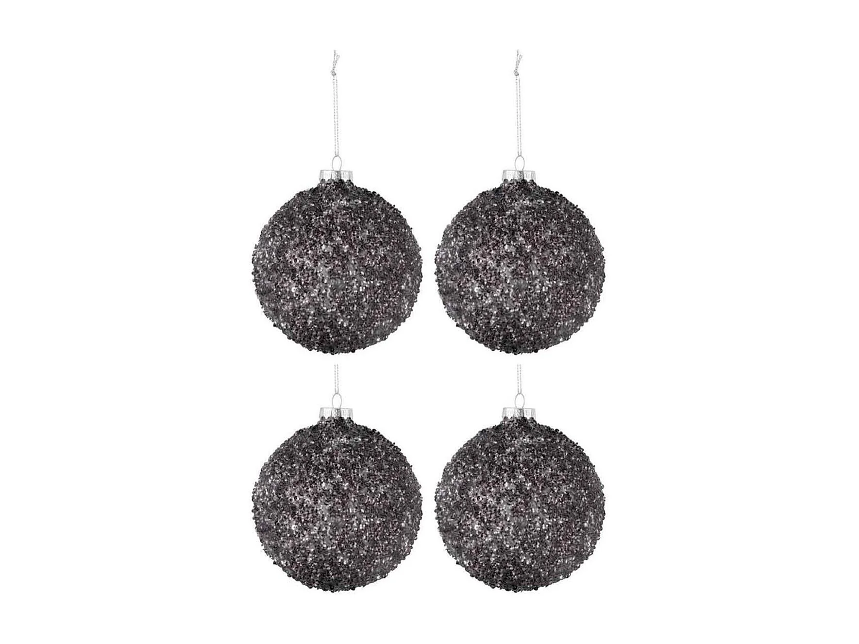 Lot de 4 Boules de Noël "Paillettes" 10cm Anthracite