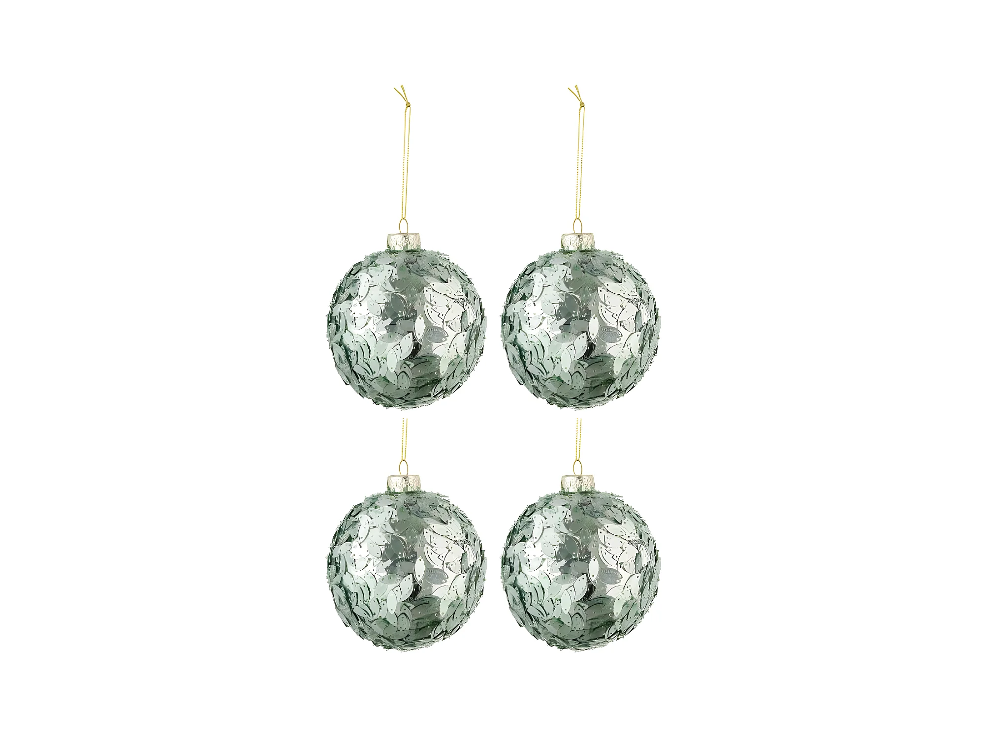 Lot de 4 Boules de Noël "Paillettes" 10cm Vert Menthe