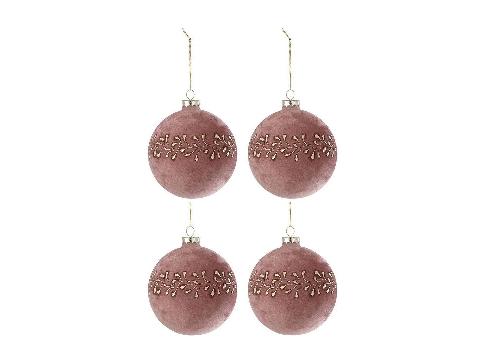 Lot de 4 Boules de Noël "Velours" 10cm Vieux Rose