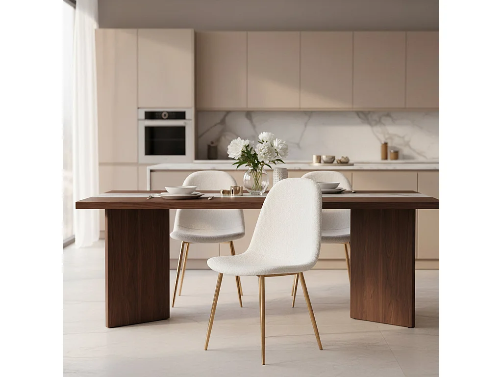 Lot de 4 chaises SCANDINAVE en velours laine bouclée pieds Gold