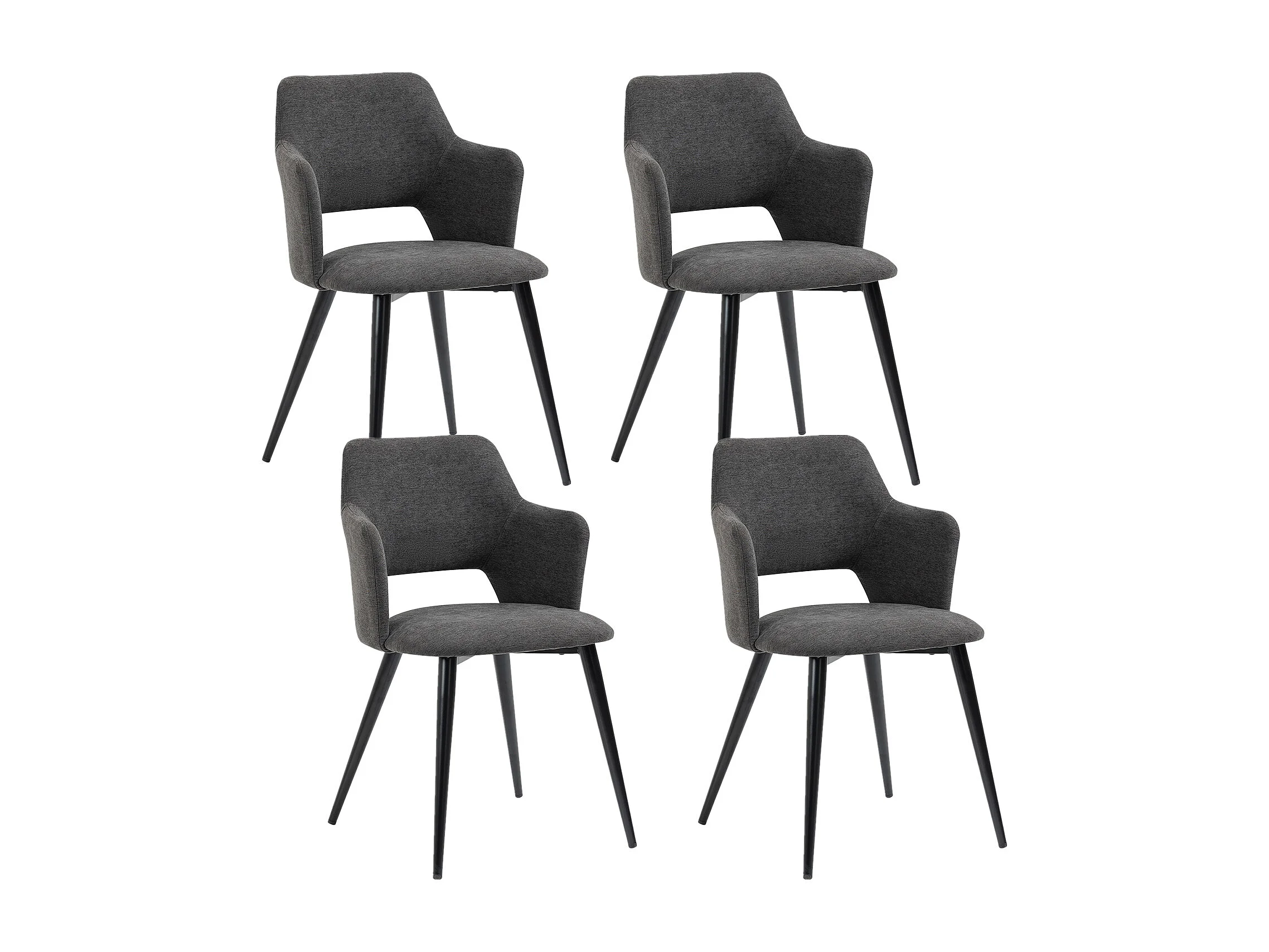 MEUBLES COSY Lot de 4 chaises de salle à manger scandinaves fauteuils avec accoudoirs, assise en tissu rembourrée, pieds en métal noir, Gris