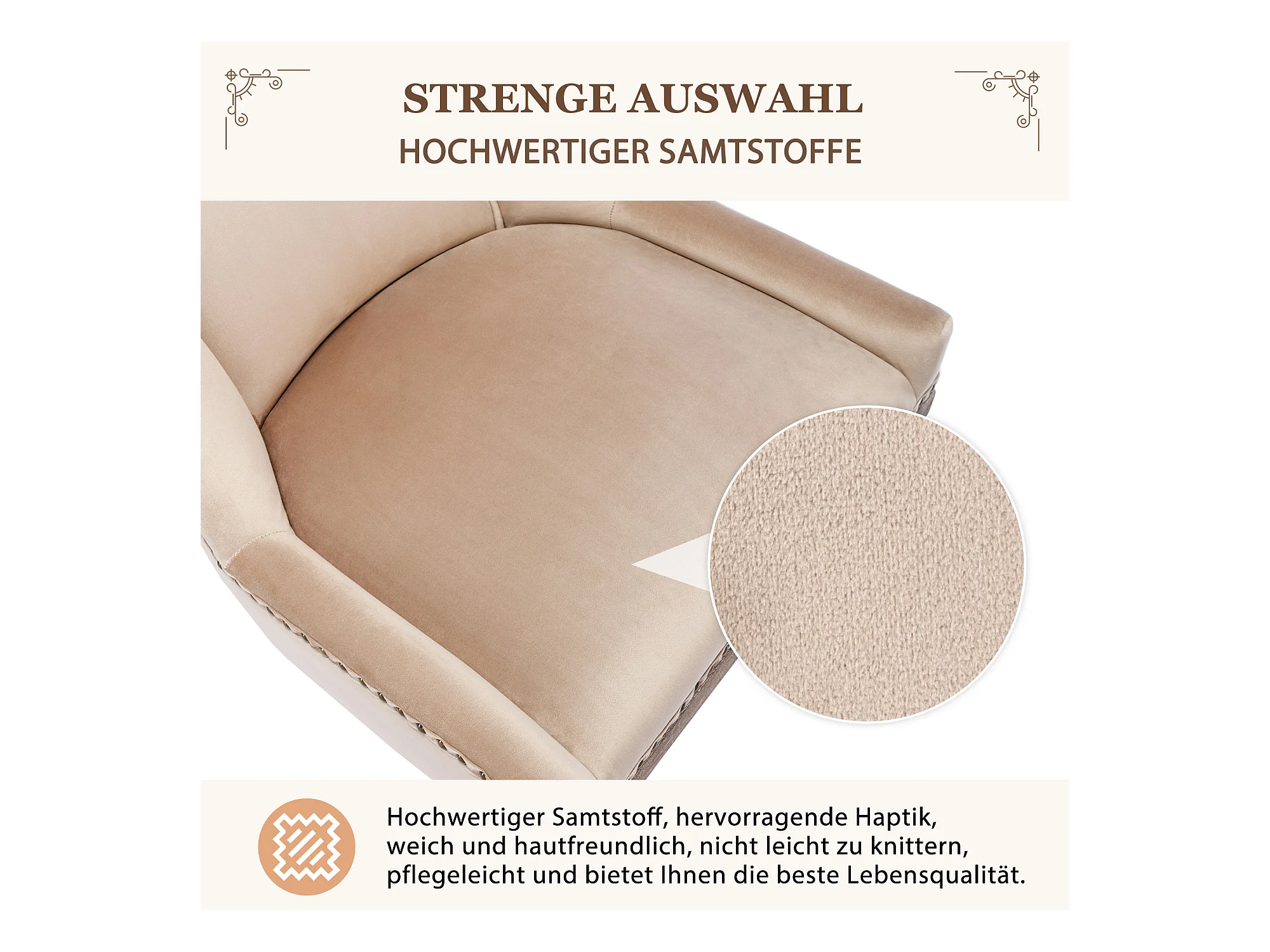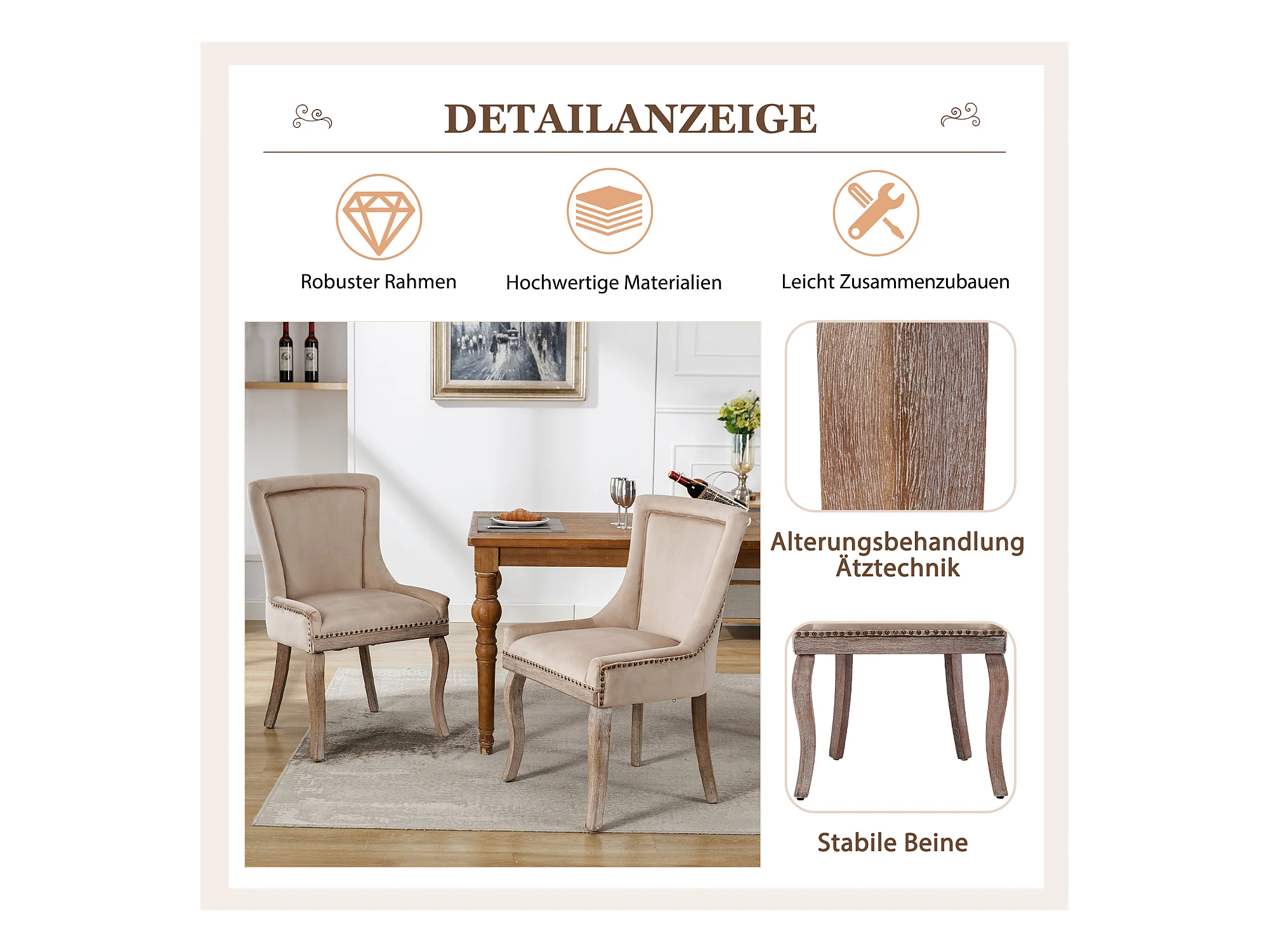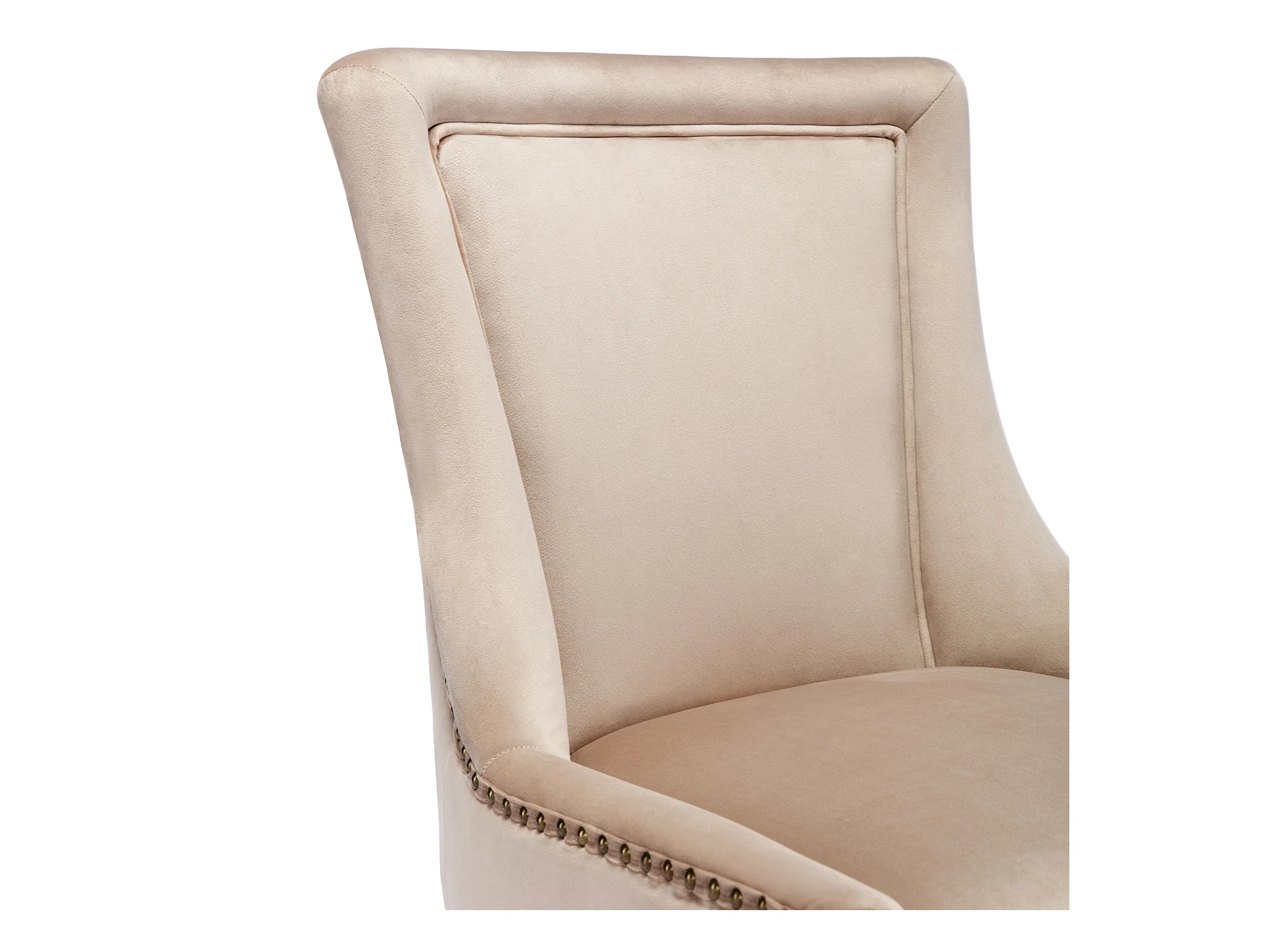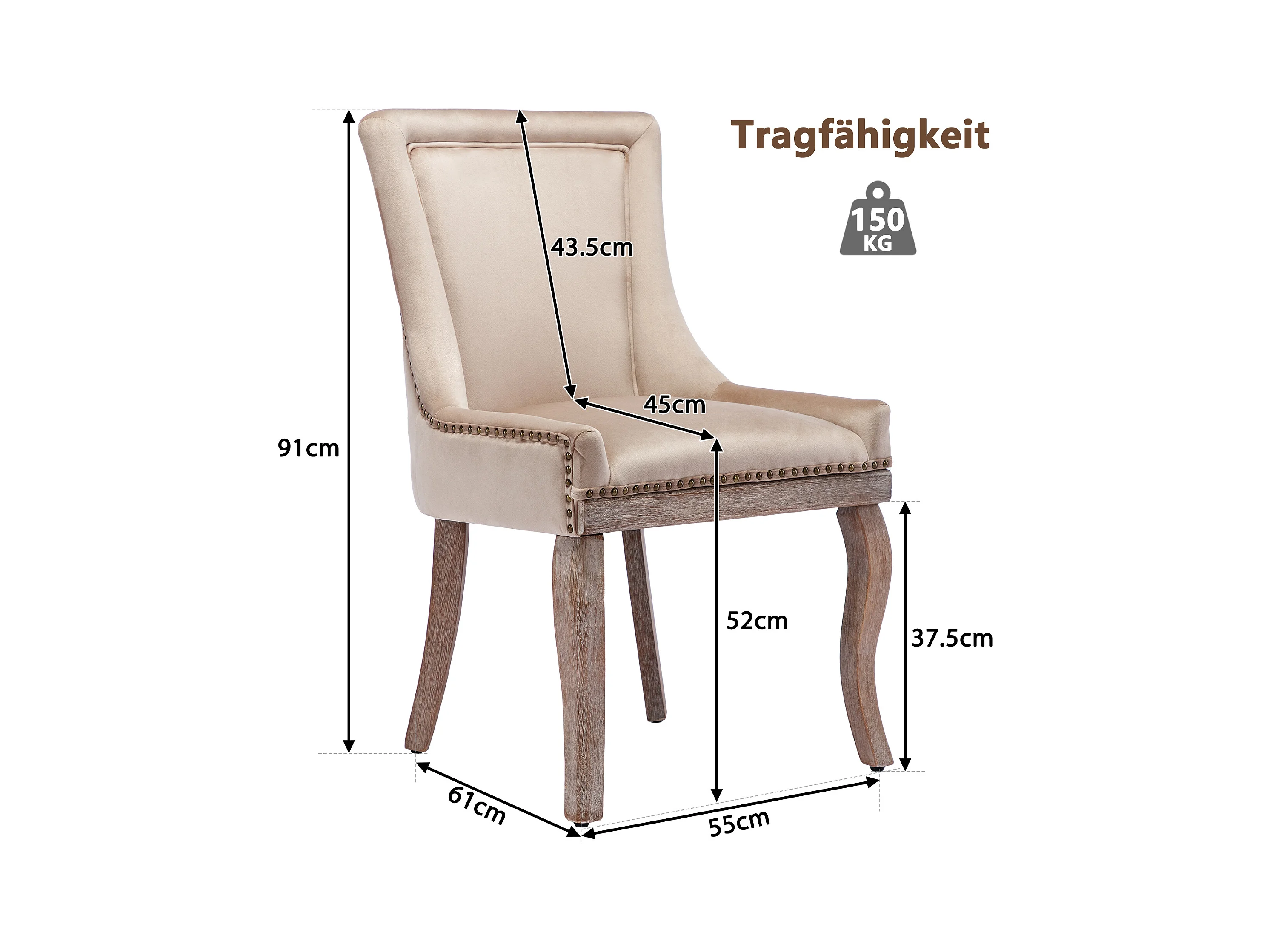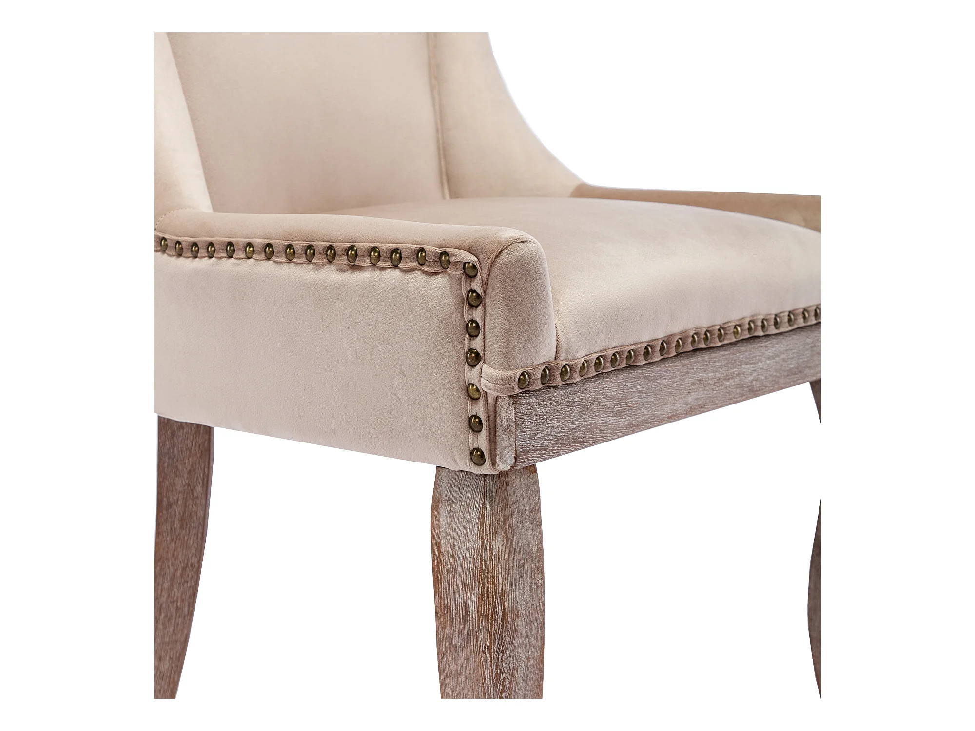 Lot de 4 Chaise de salle à manger Rembourrée avec garniture cloutée et pieds en bois - Beige