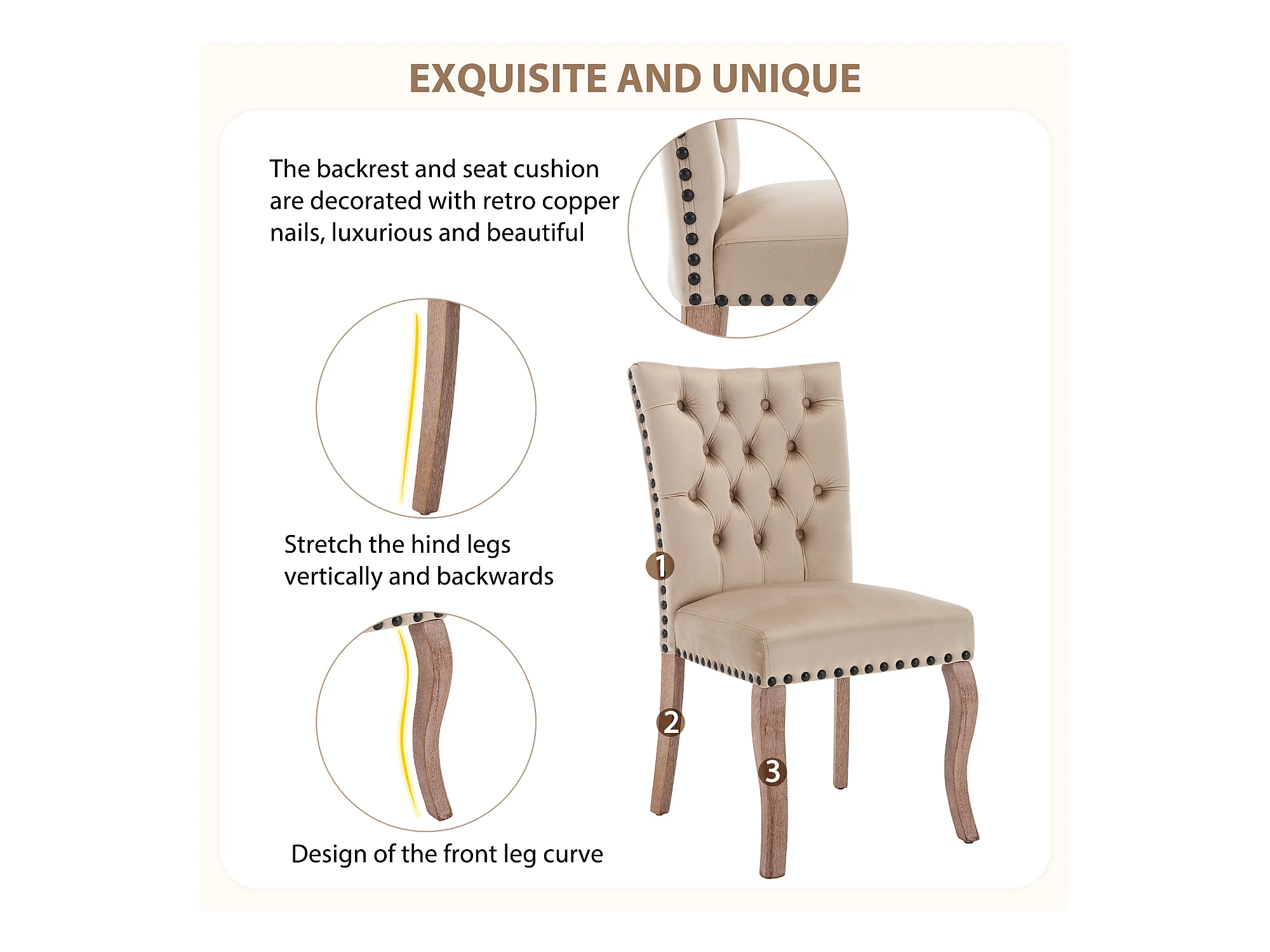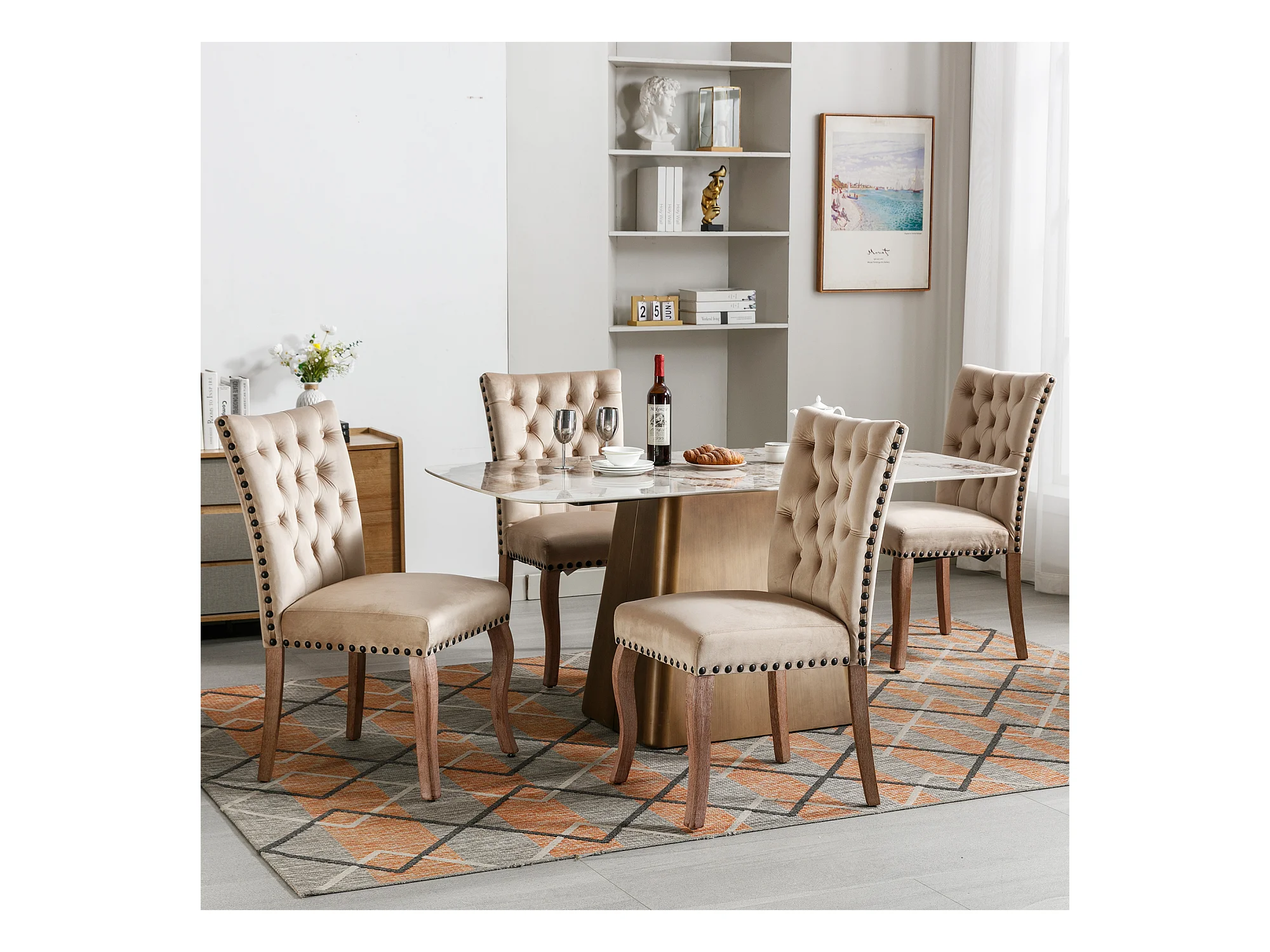 Lot de 4 chaises de salle à manger avec garniture cloutée et dossier rembourré - Velours camel clair