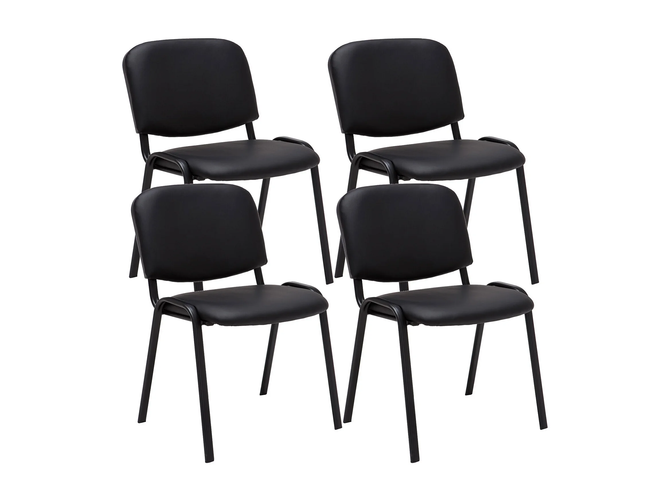 Lot de 4 Chaise de conférence - Similicuir & Noir - Noir - Ken