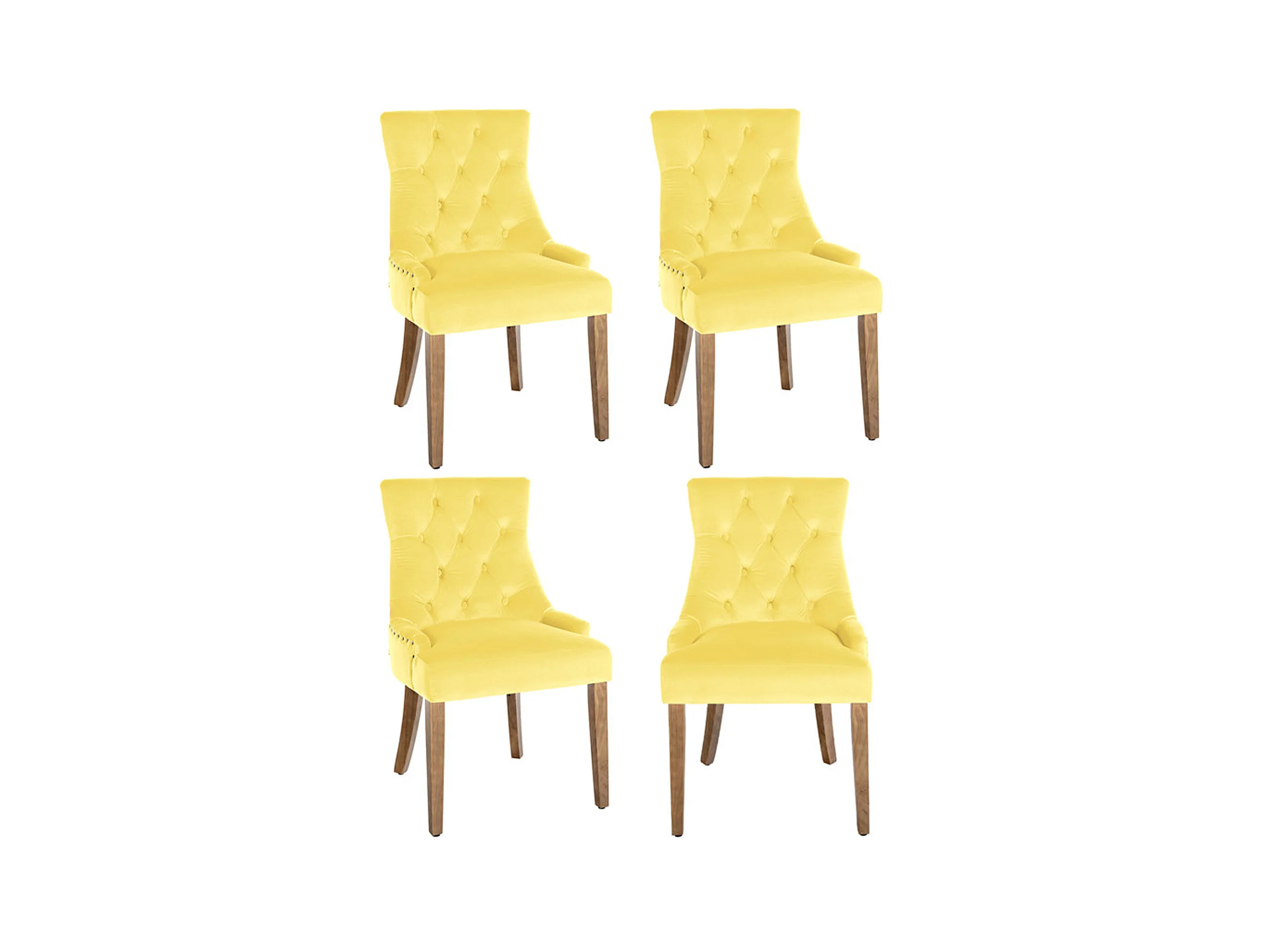 Lot de 4 chaise salle à manger - Velours & Antique clair - Jaune - Aberdeen