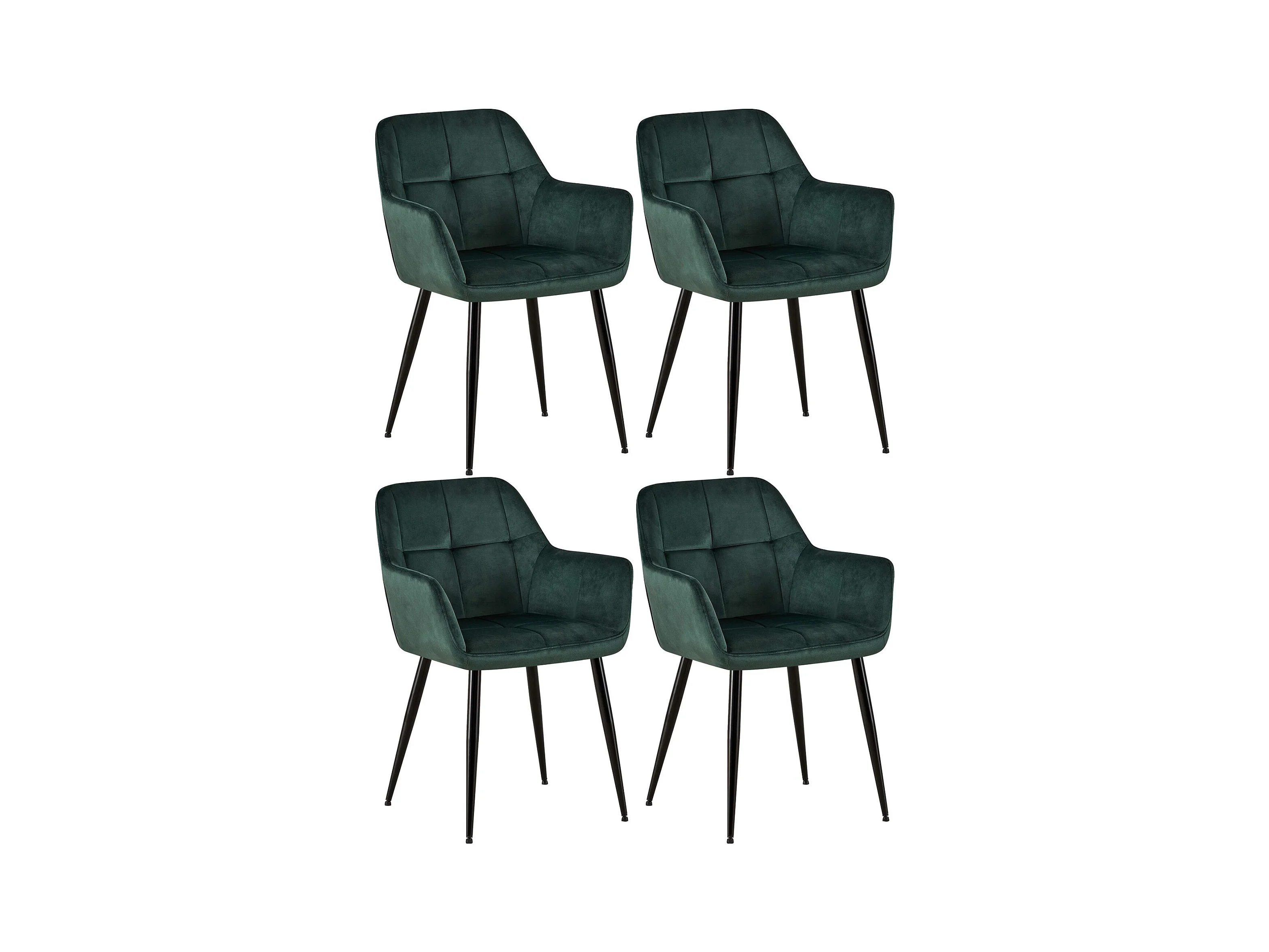 Lot de 4 chaises avec accoudoirs - Velours - Vert - Emia