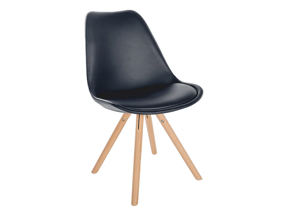 Lot de 4 chaise salle à manger - Similicuir & Nature (rond) - Noir - Sofia