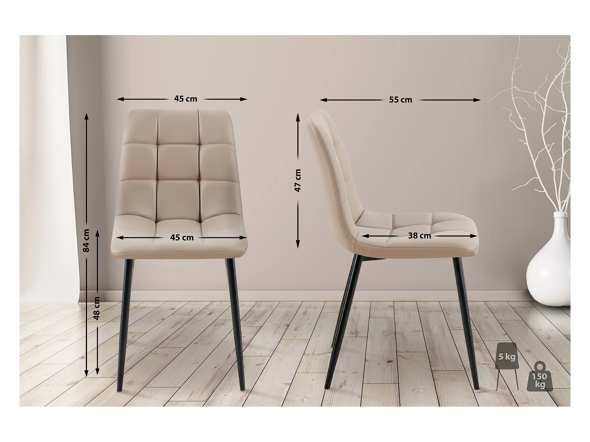 Lot de 4 chaise salle à manger - Similicuir - Taupe - Antibes