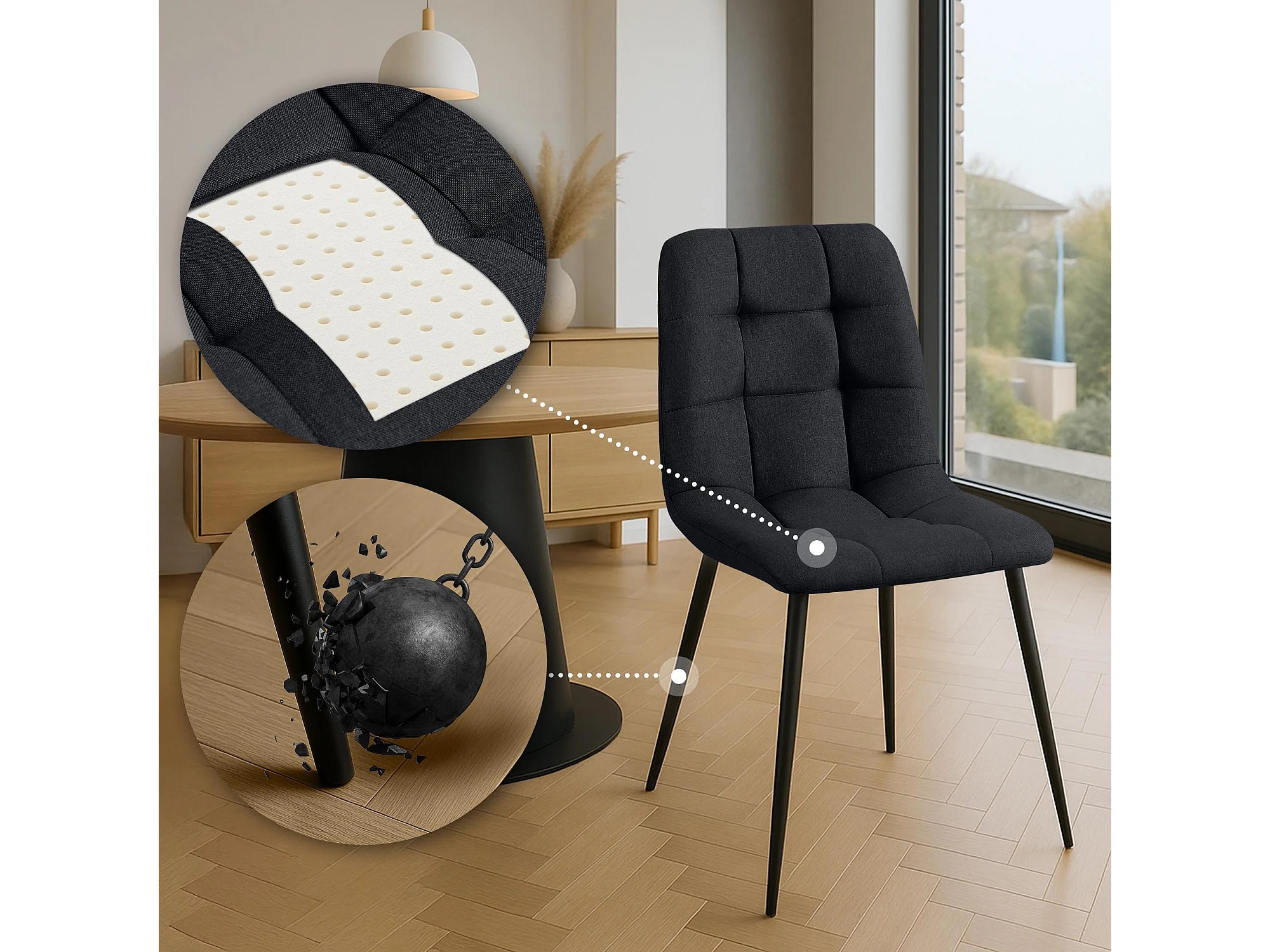 Lot de 4 chaise salle à manger - Tissu - Noir - Antibes