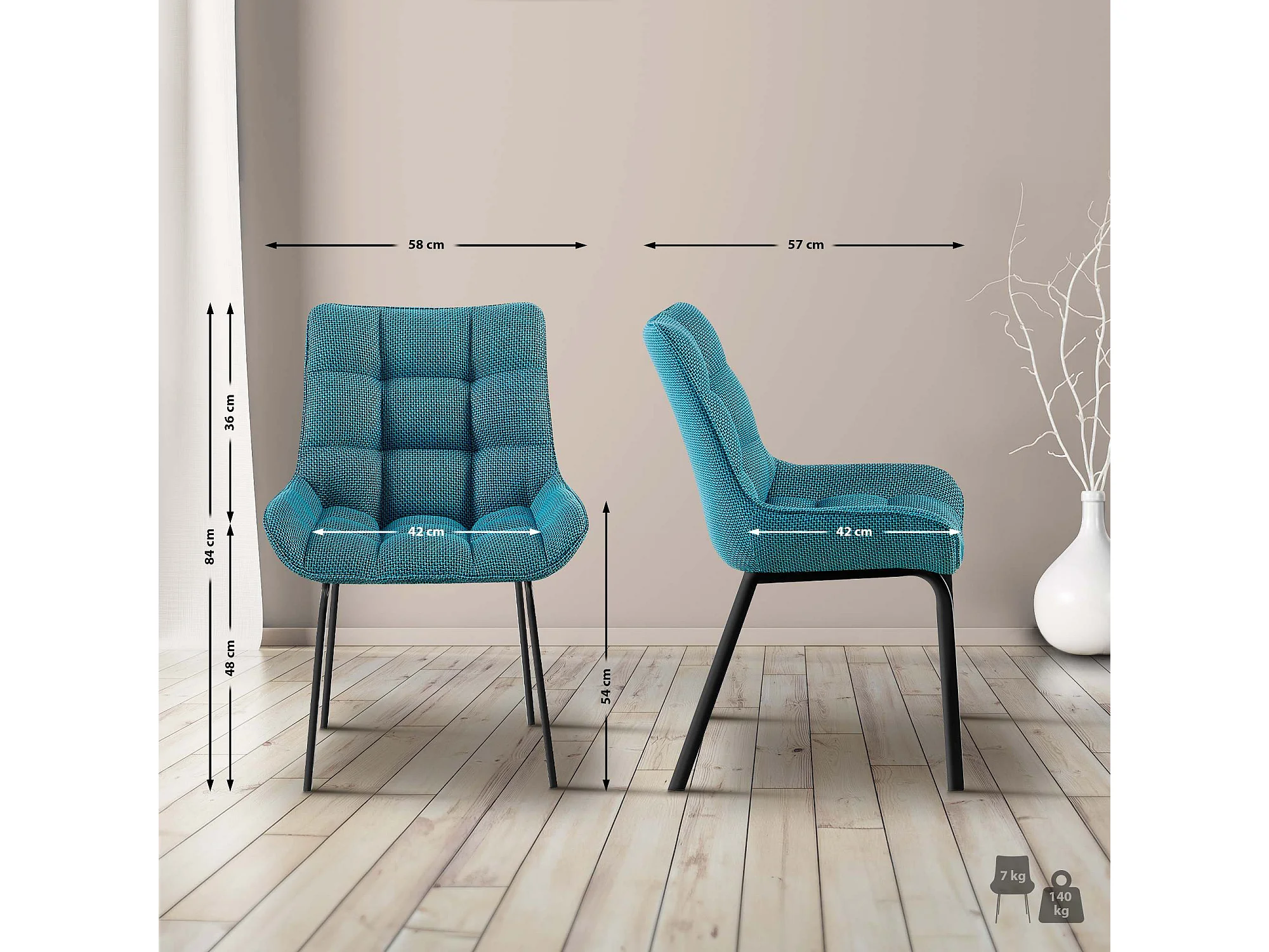 Lot de 4 chaise salle à manger - Tissu & Noir - Turquoise - Saranda