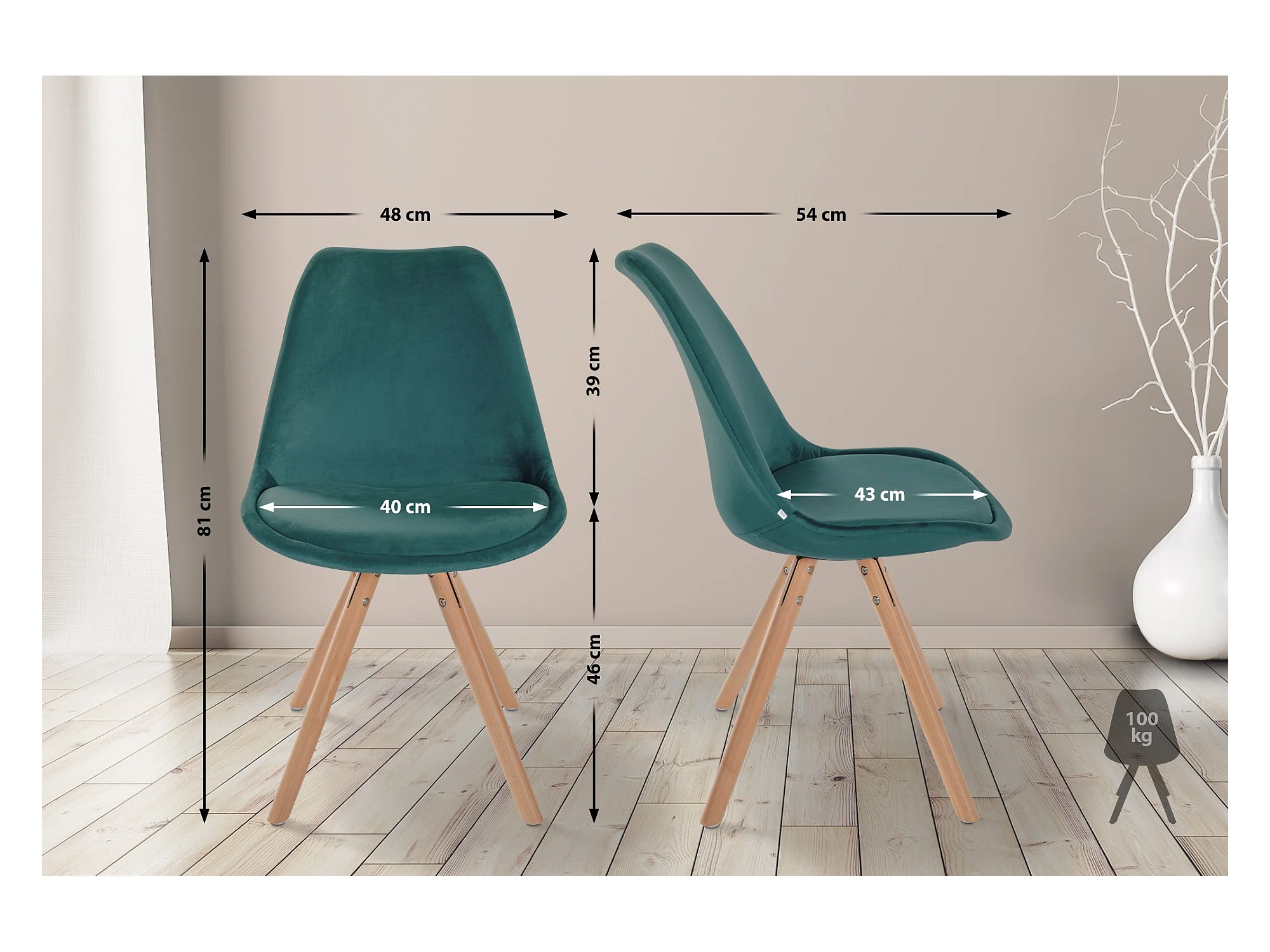 Lot de 4 chaise salle à manger - Velours & Nature (rond) - Vert - Sofia