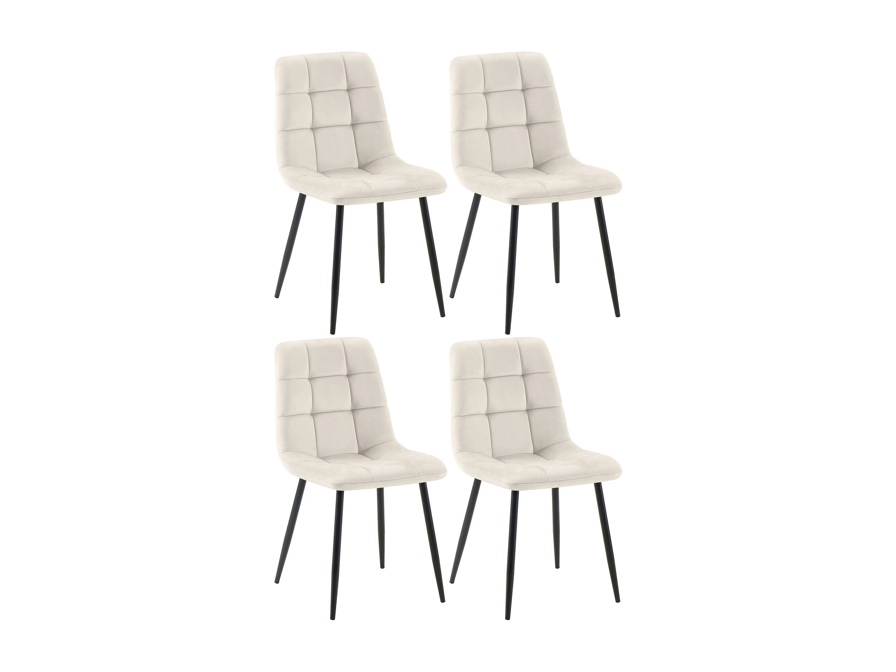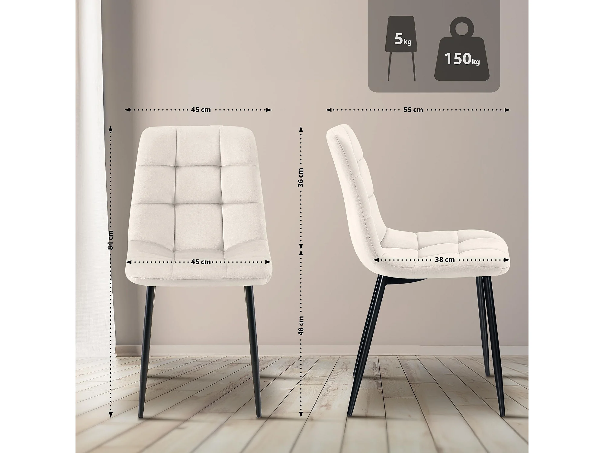Lot de 4 chaise salle à manger - Velours - Blanc crème - Tilde