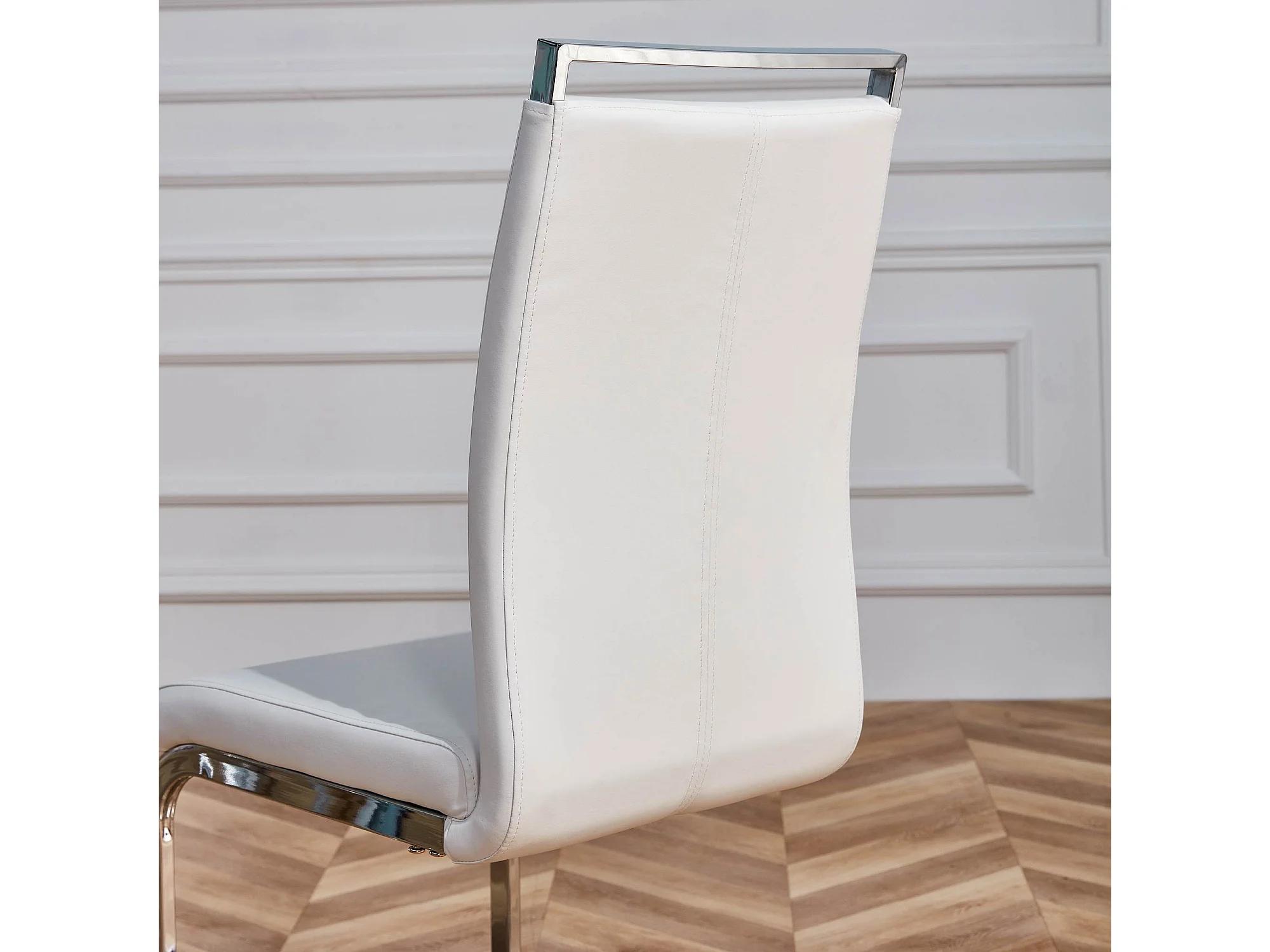 Lot de 4 chaises cantilever, supporte jusqu à 120 kg, avec poignée, dossier et assise rembourrés, PU blanc