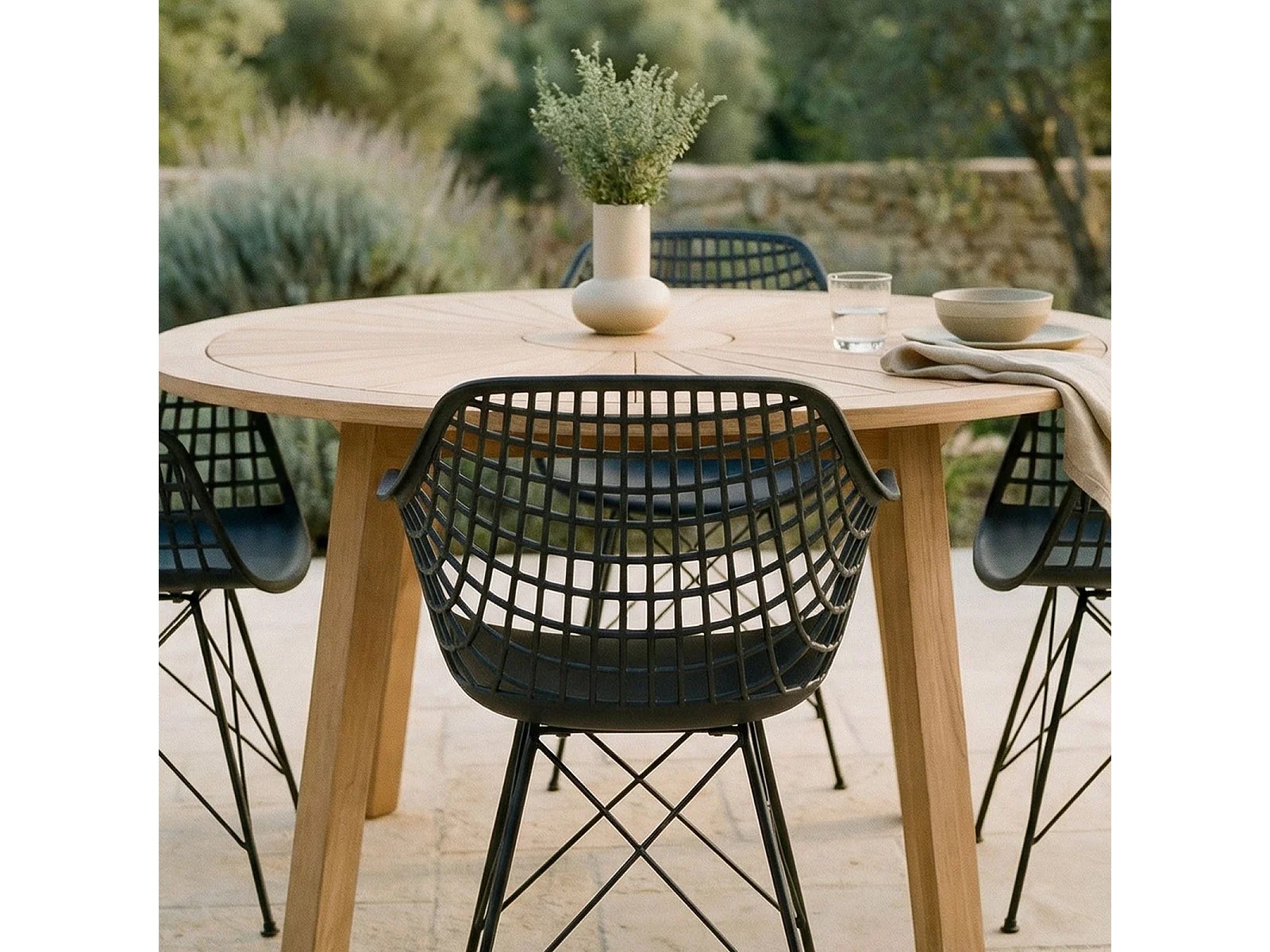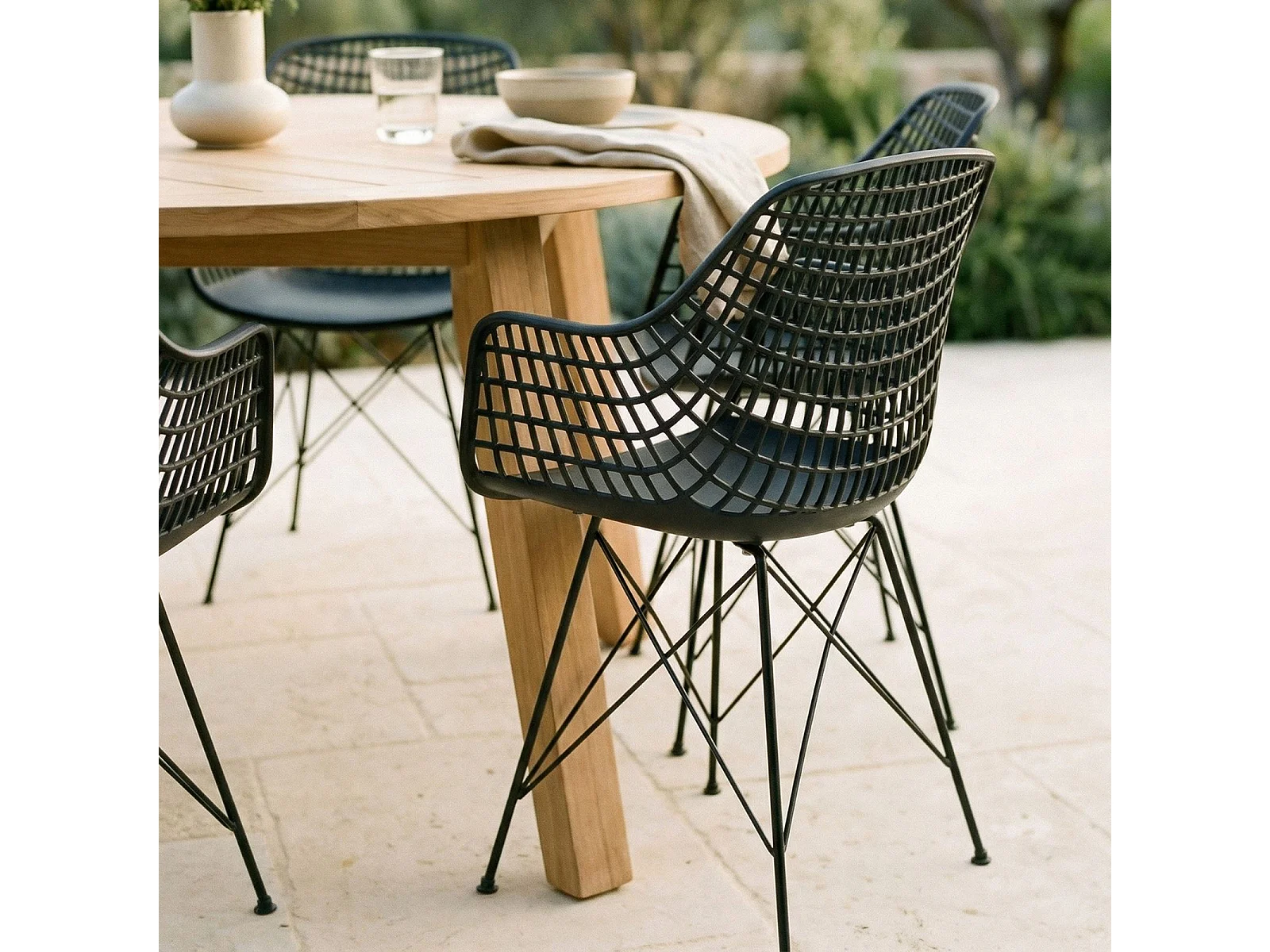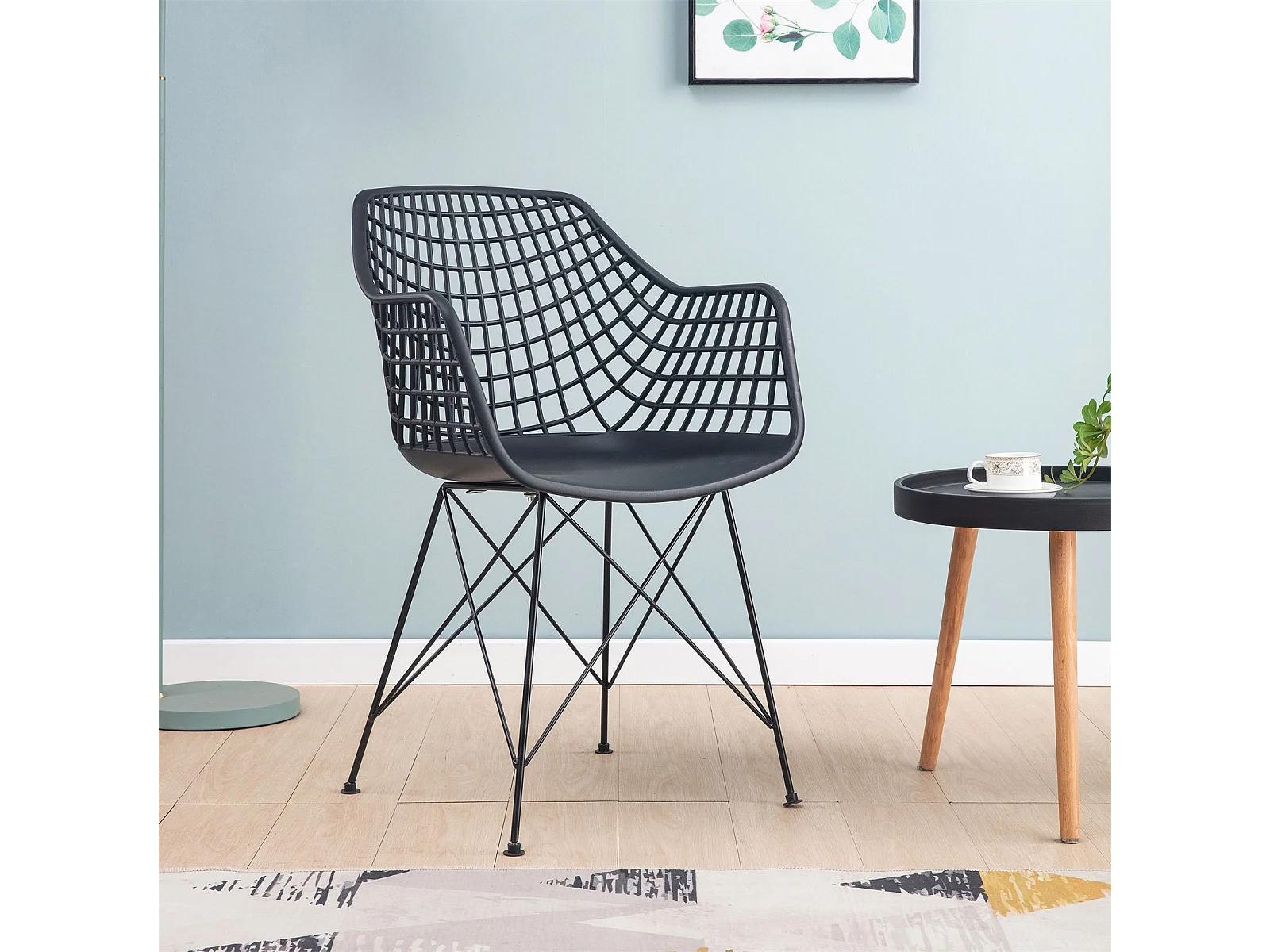Lot de 4 chaises ALICANTE pour salle à manger ou cuisine design retro avec accoudoirs coque en plastique noir et 4 pieds croisé noir