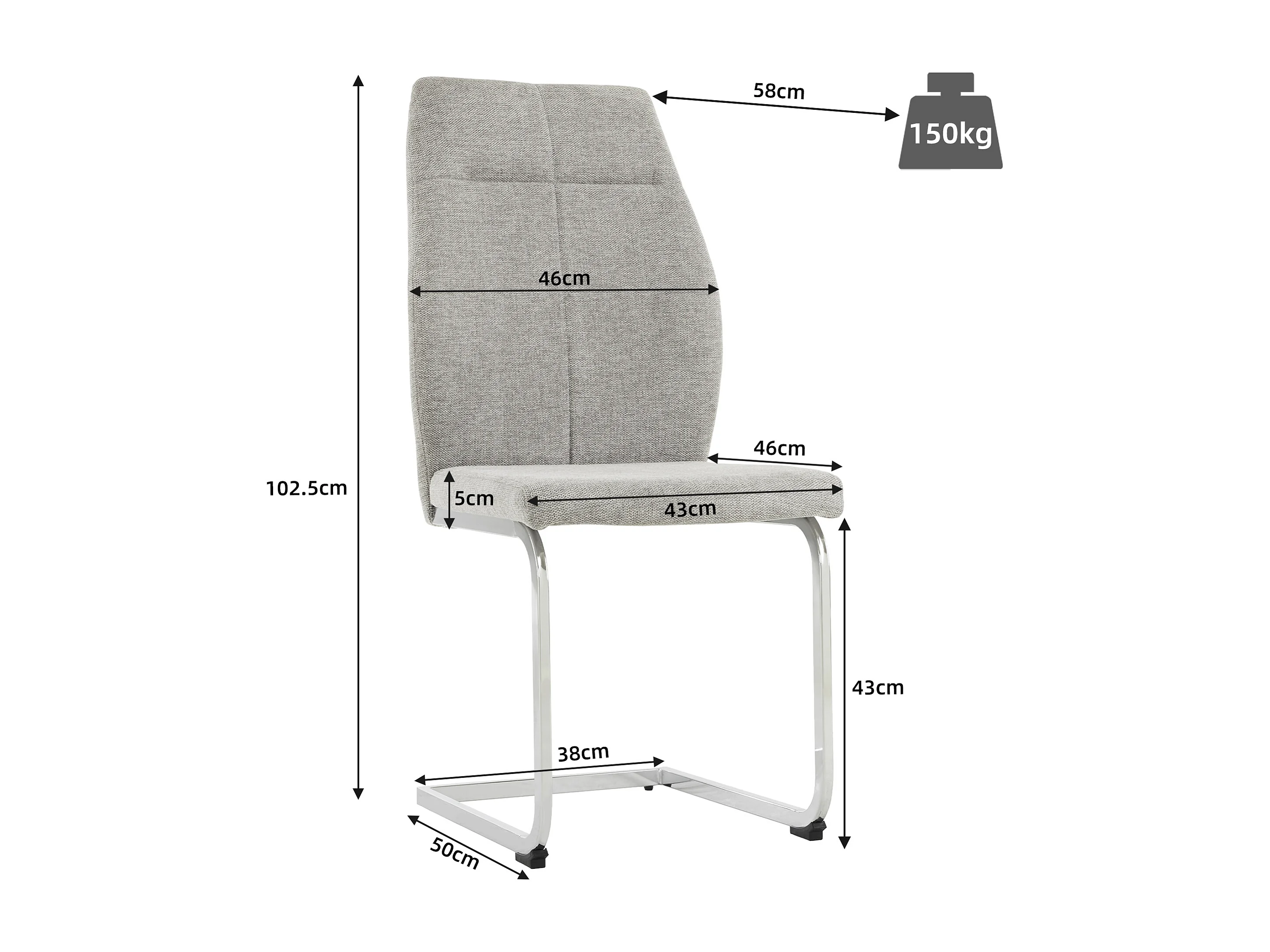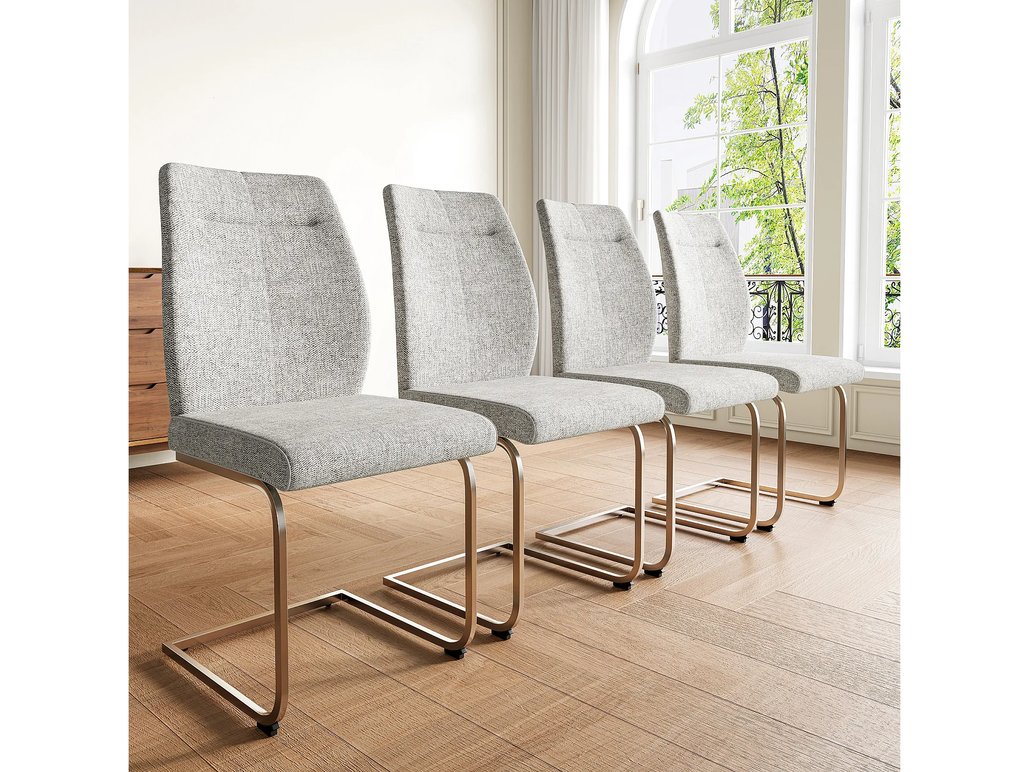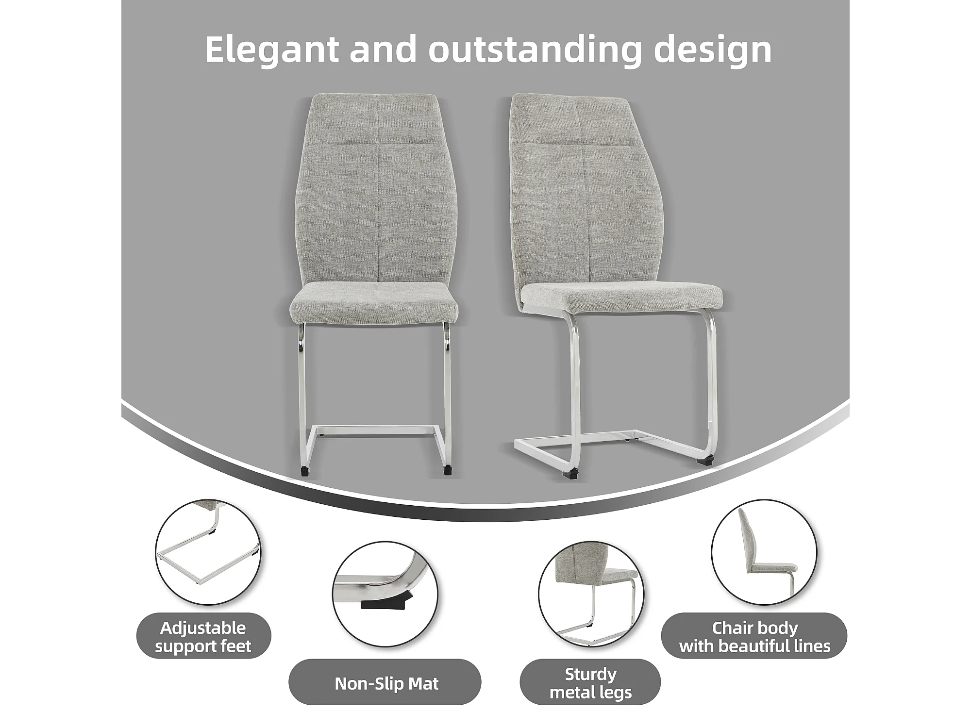 Lot de 4 Chaises cantilever en lin - Pièds en tube d'acier - Sans accoudoirs - Gris