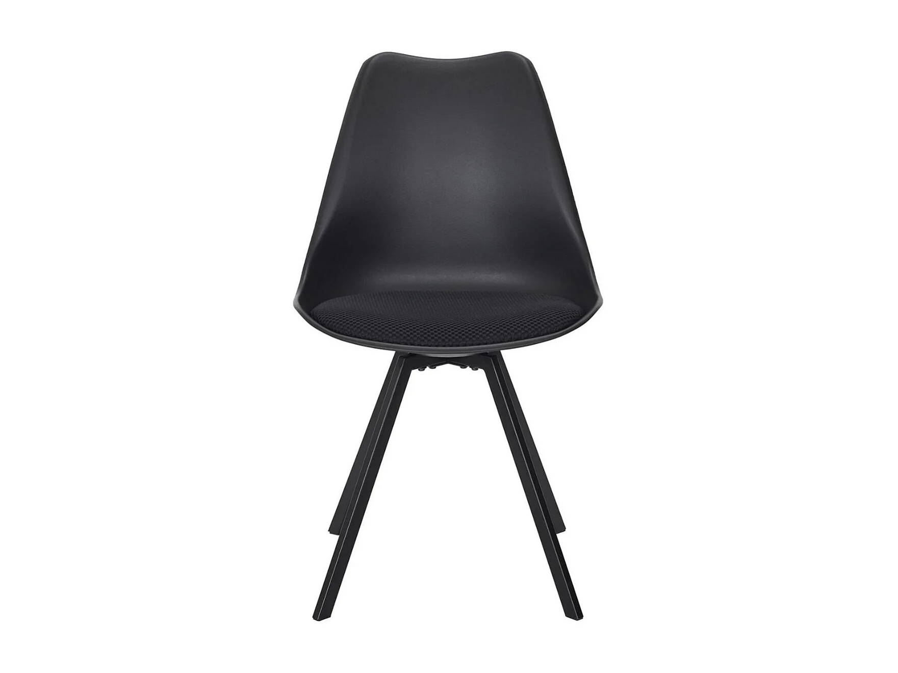 Lot de 4 chaises coque plastique et coussin en tissu texturé maille 3D noir - ELECTRON