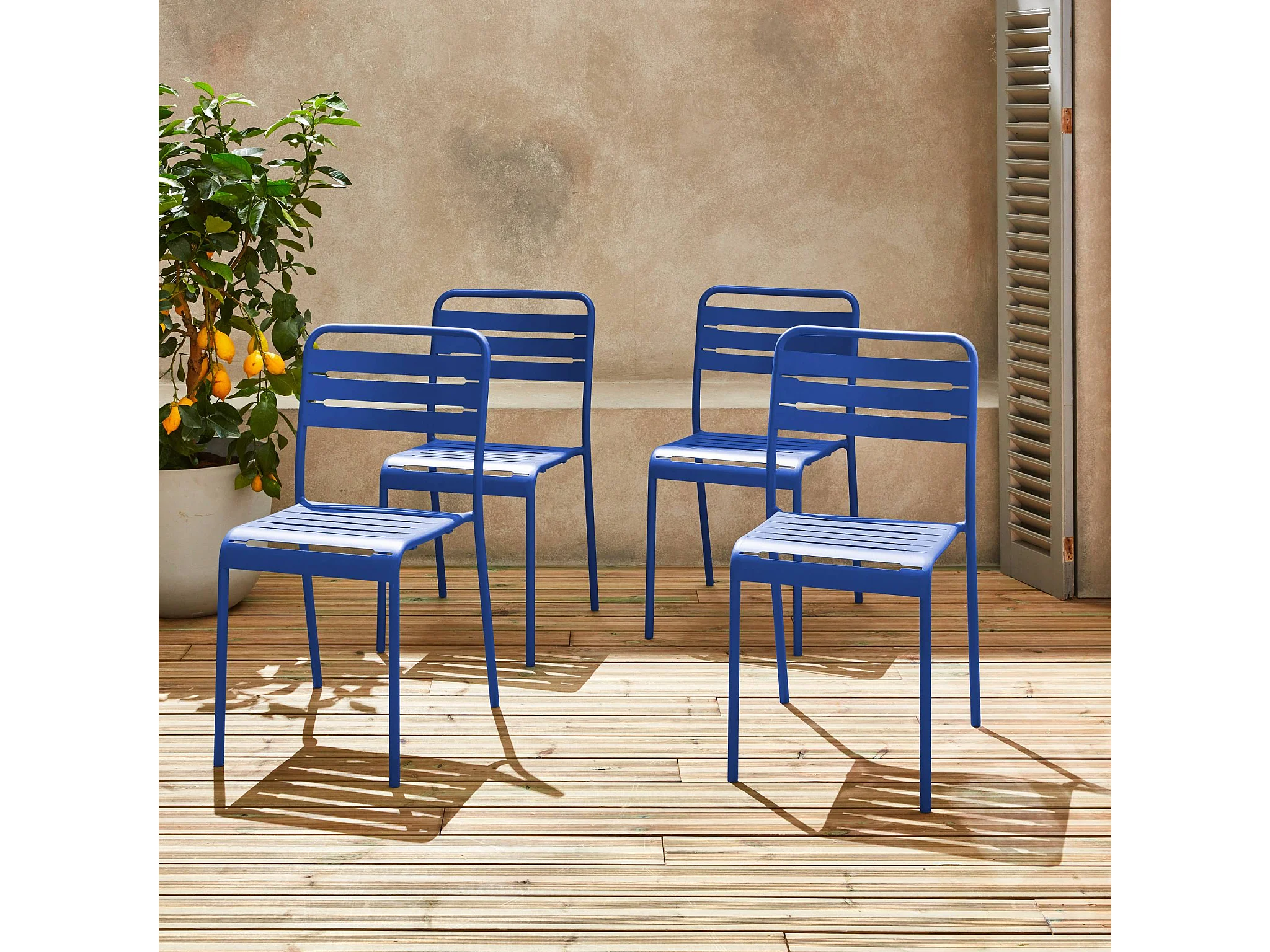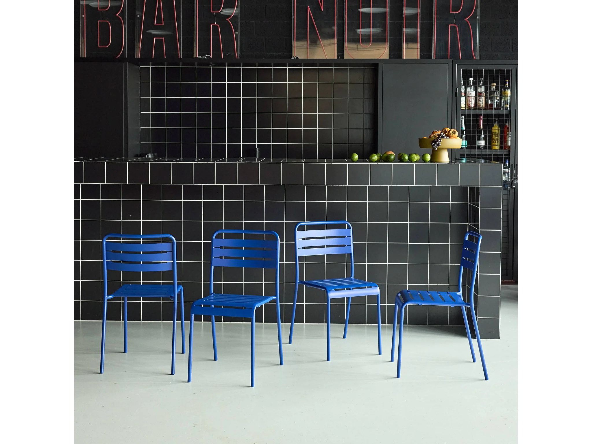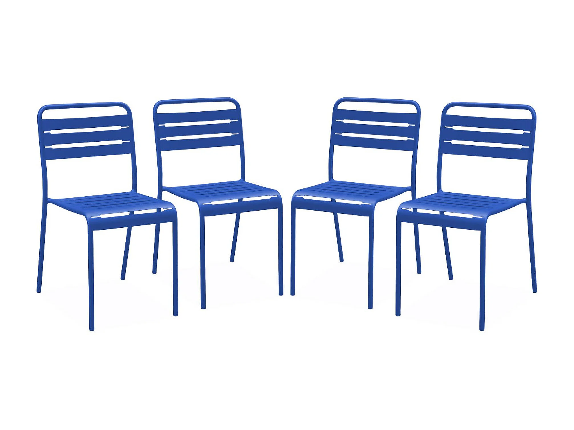 Lot de 4 chaises de jardin acier. 4 places. bleu électrique. Amelia. L44 x P52 x H79cm