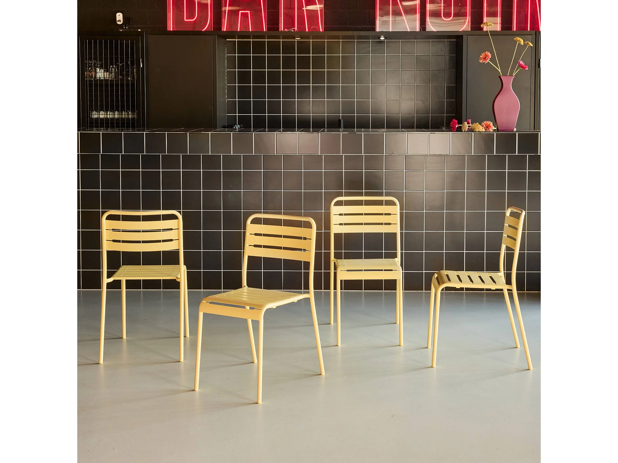 Lot de 4 chaises de jardin acier. 4 places. jaune. Amelia. L44 x P52 x H79cm
