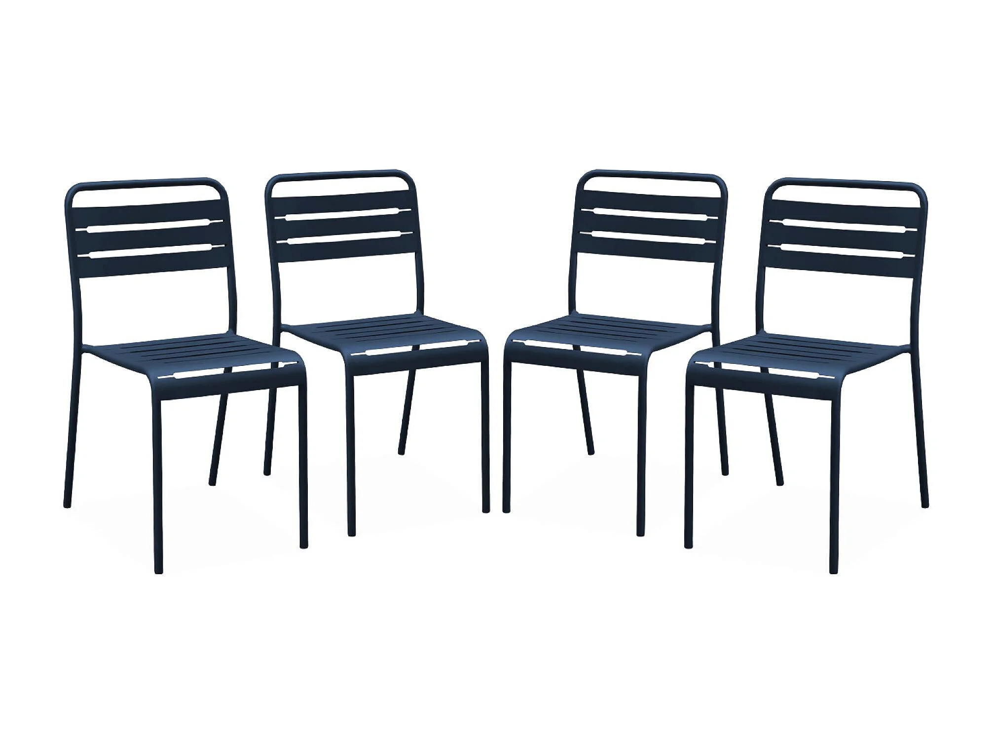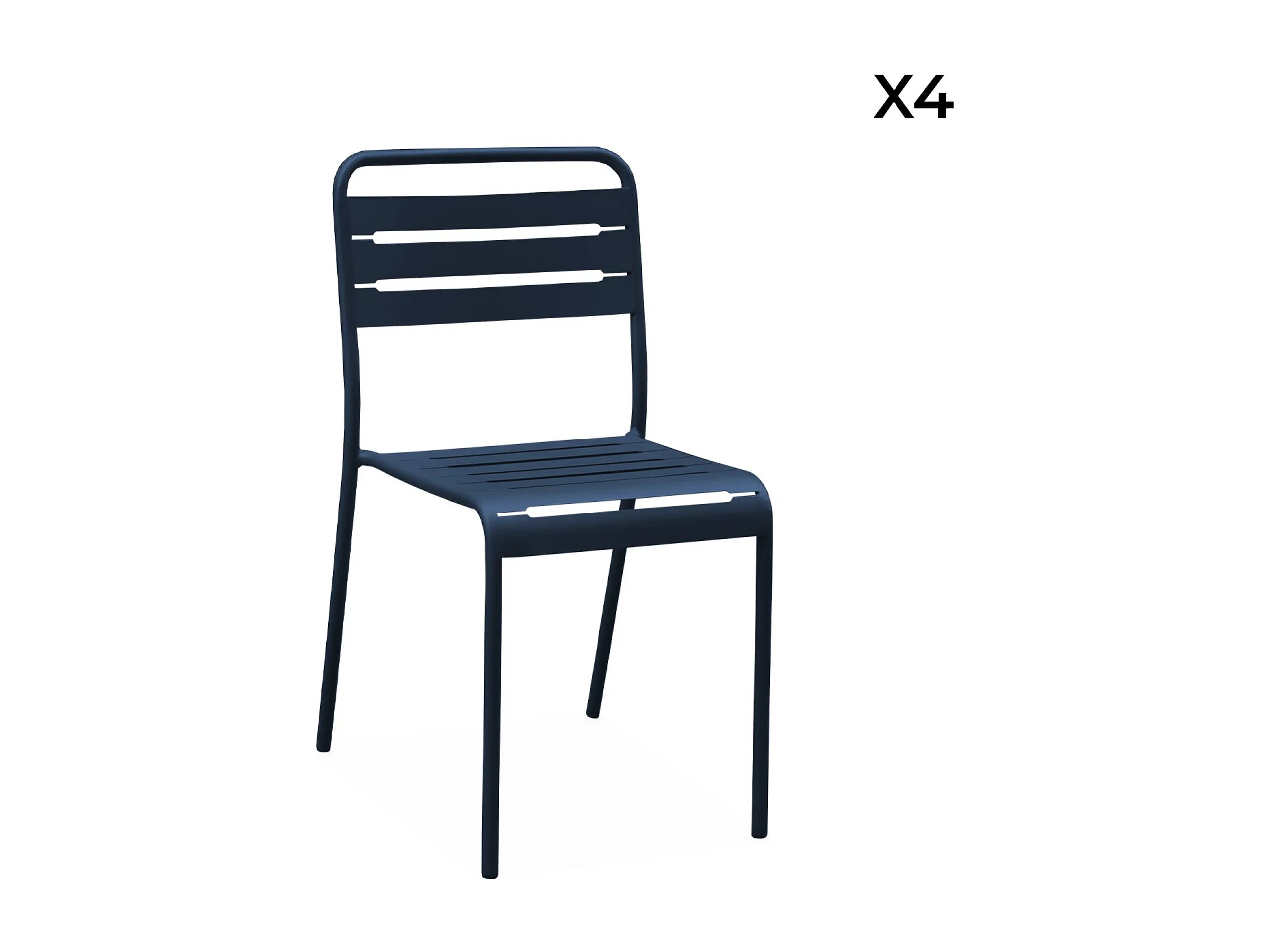 Lot de 4 chaises de jardin acier. 4 places. marine. Amelia. L44 x P52 x H79cm