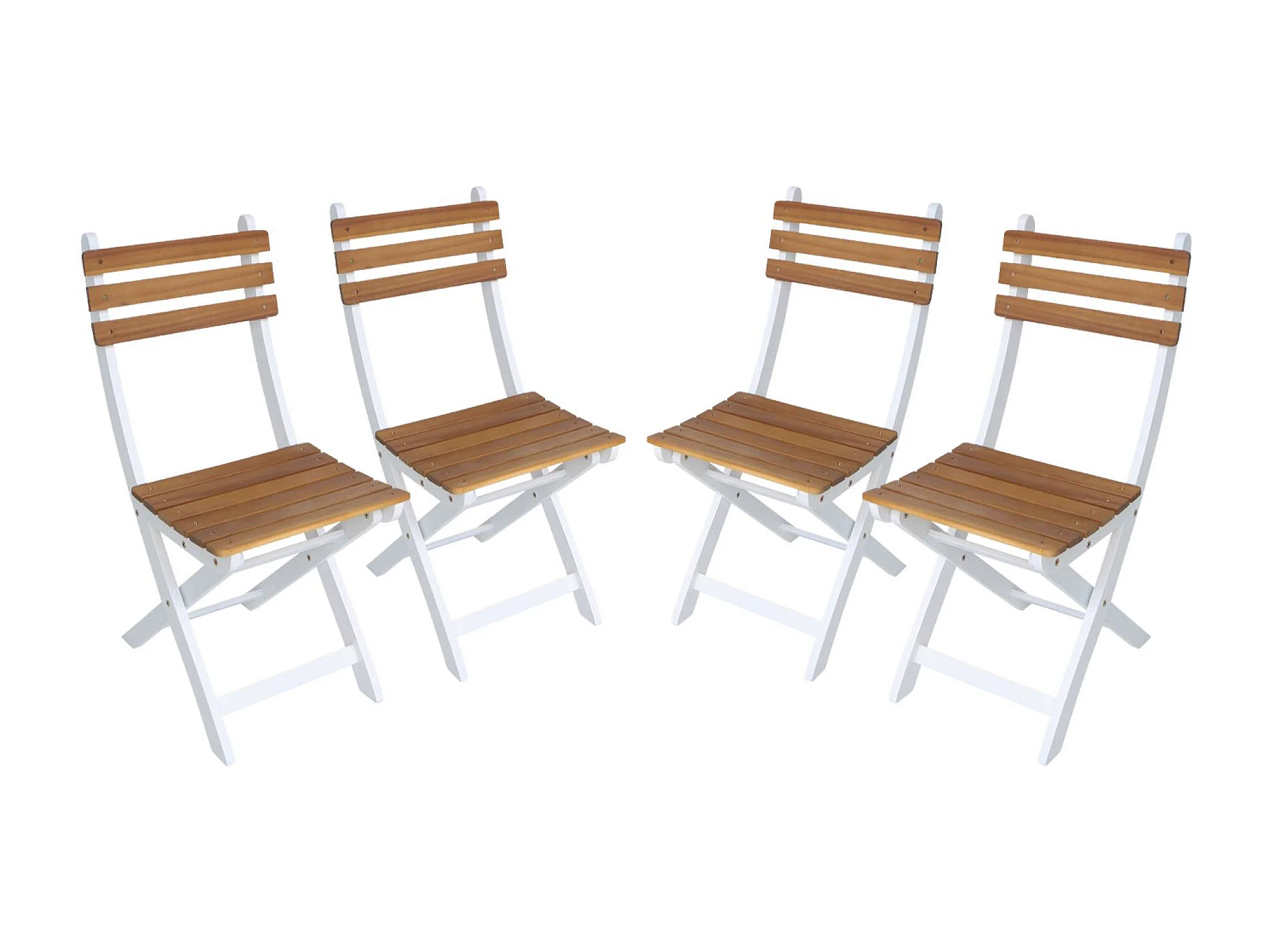 Lot de 4 chaises de jardin CALENA pliables acacia blanc. 40 x 52 x 85 cm