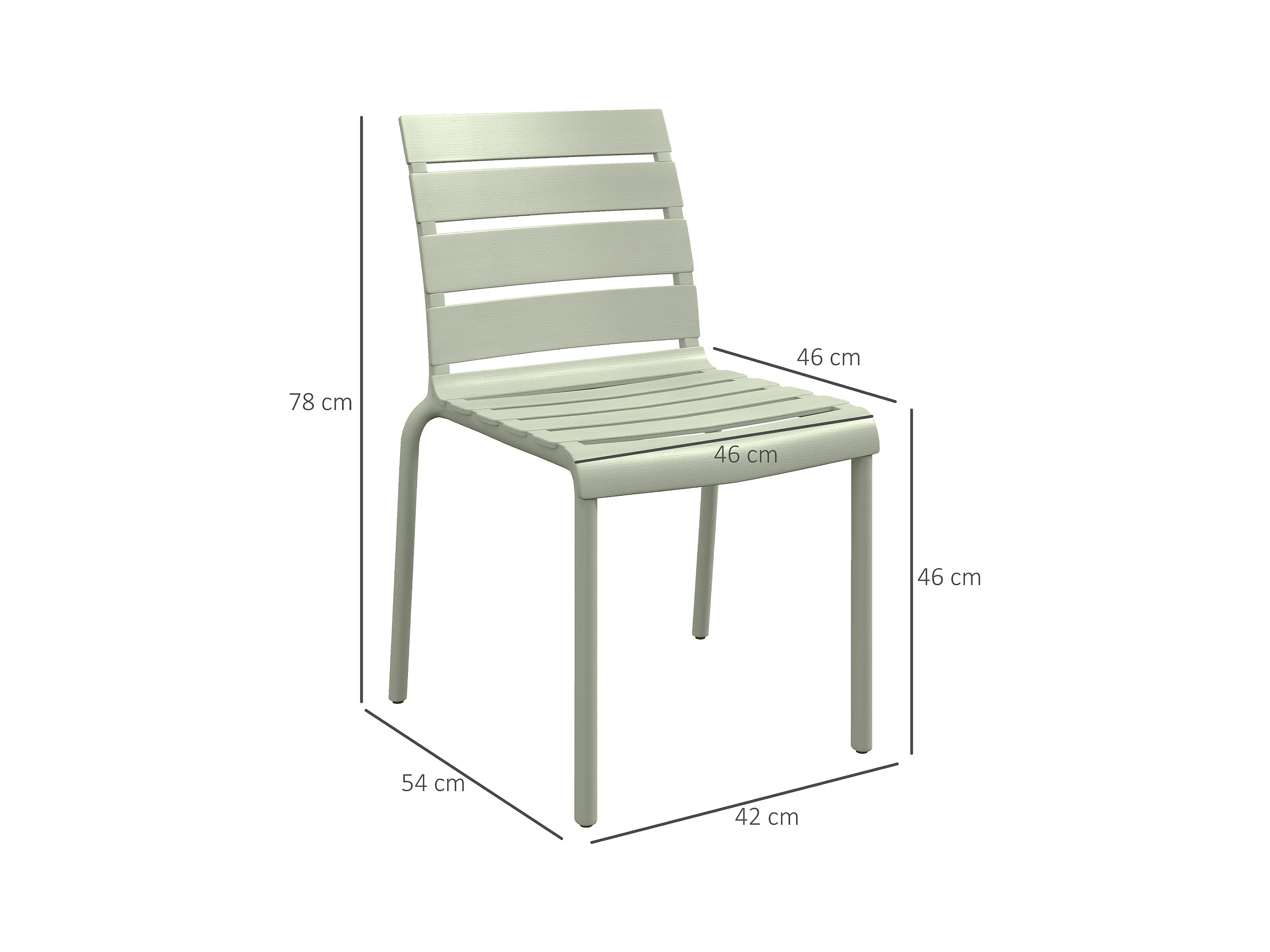 Lot de 4 chaises de jardin empilables avec assise et dossier à lattes vert