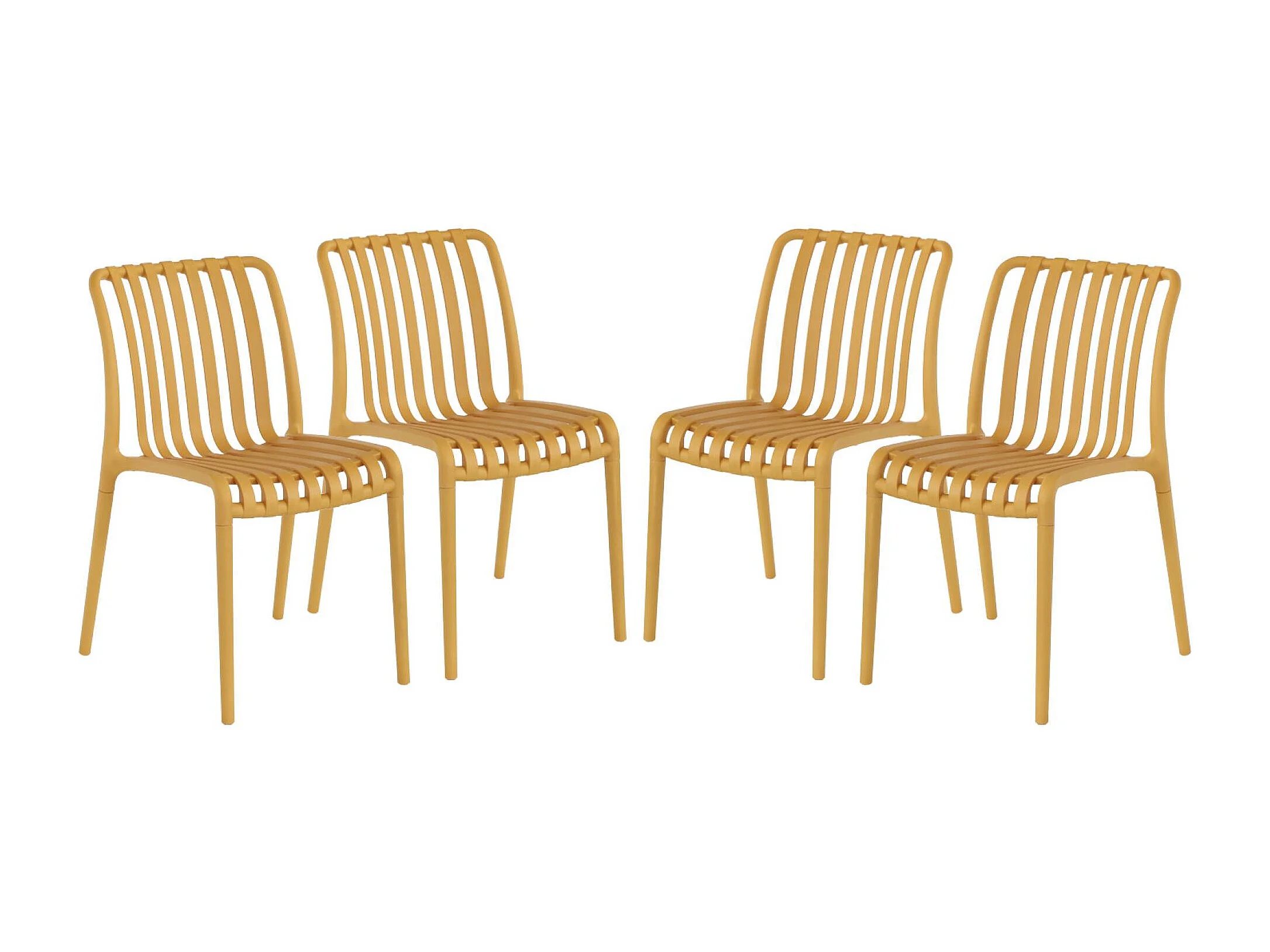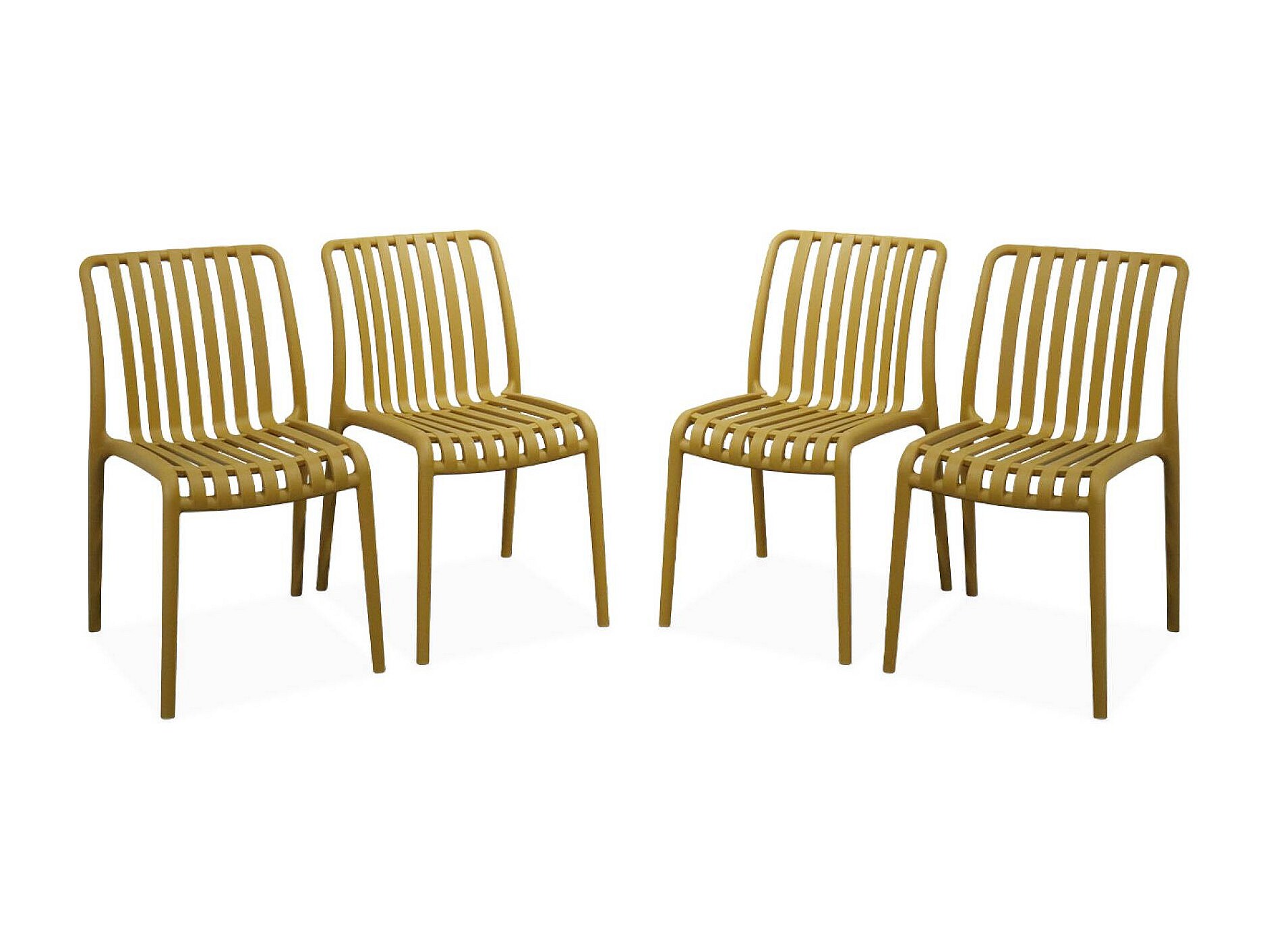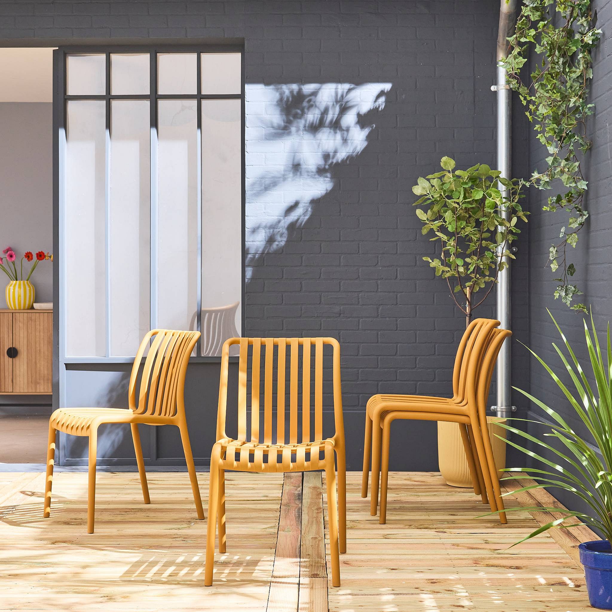 Lot de 4 chaises de jardin en plastique moutarde. empilables. déjà montées