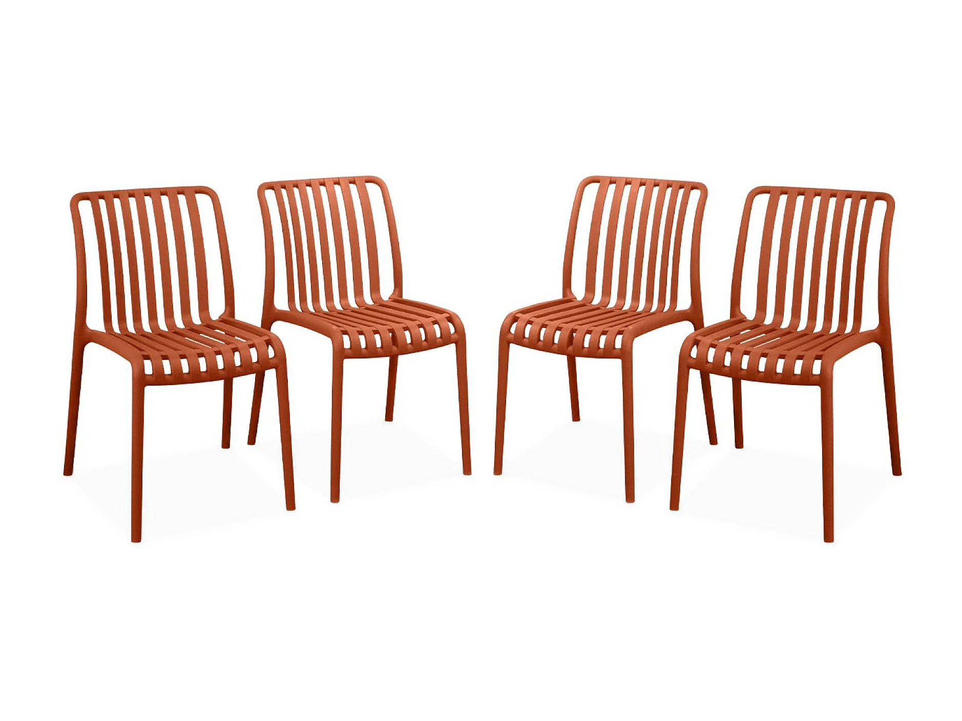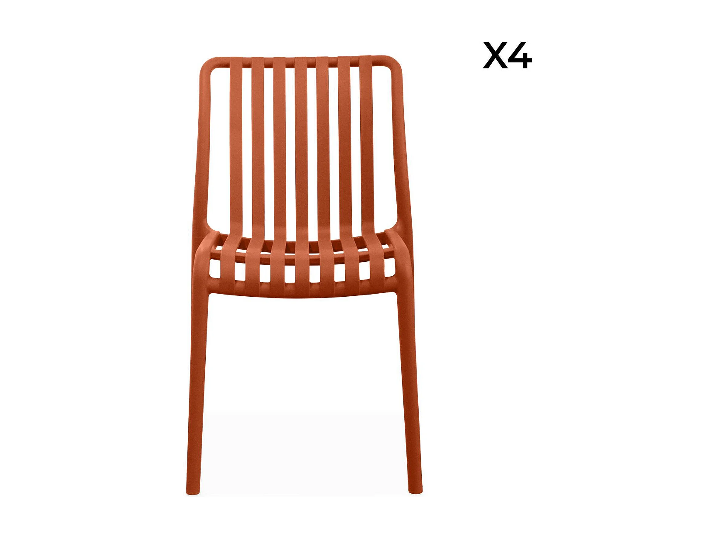Lot de 4 chaises de jardin en plastique terracotta. empilables. déjà montées