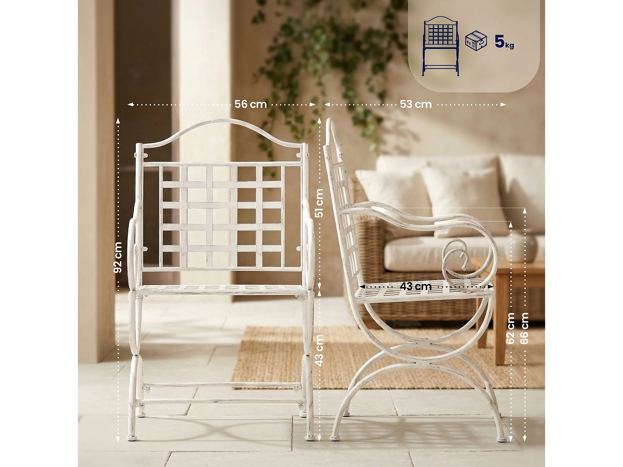Lot de 4 Chaises de jardin - Métal - Blanc antique - Lotta