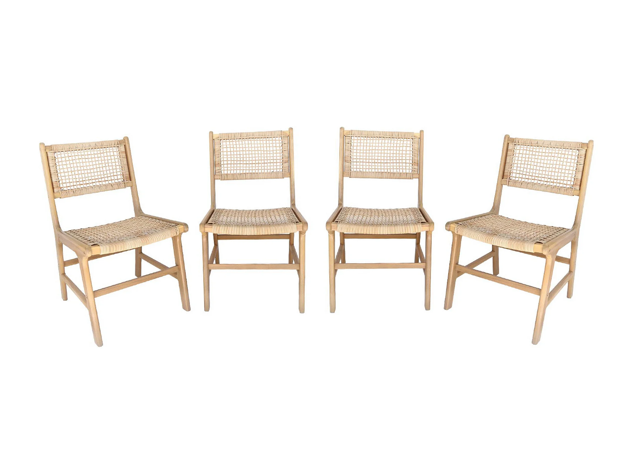 Lot de 4 chaises de jardin Ocara. cannage et bois. L 61 x 51 x 85cm