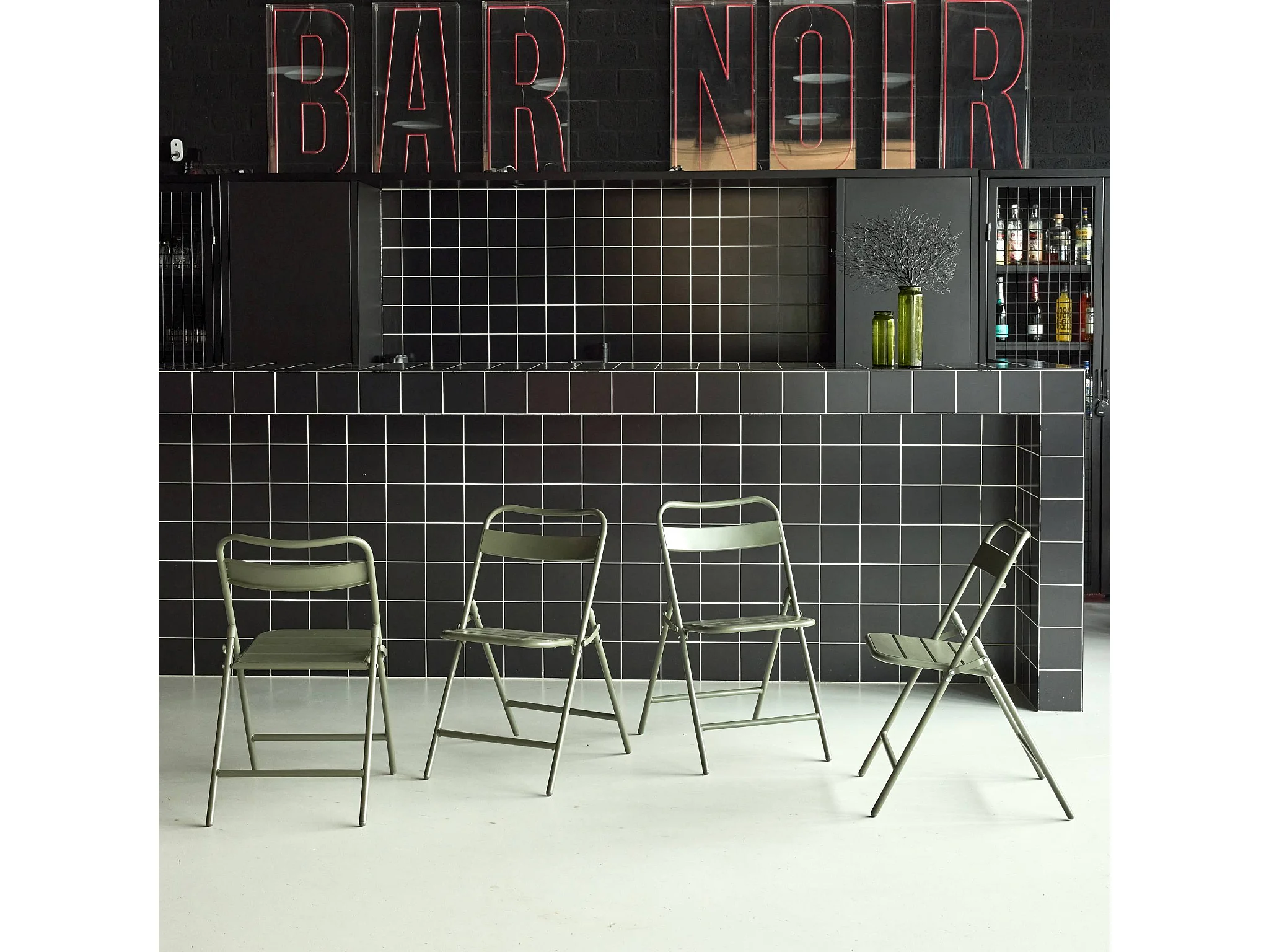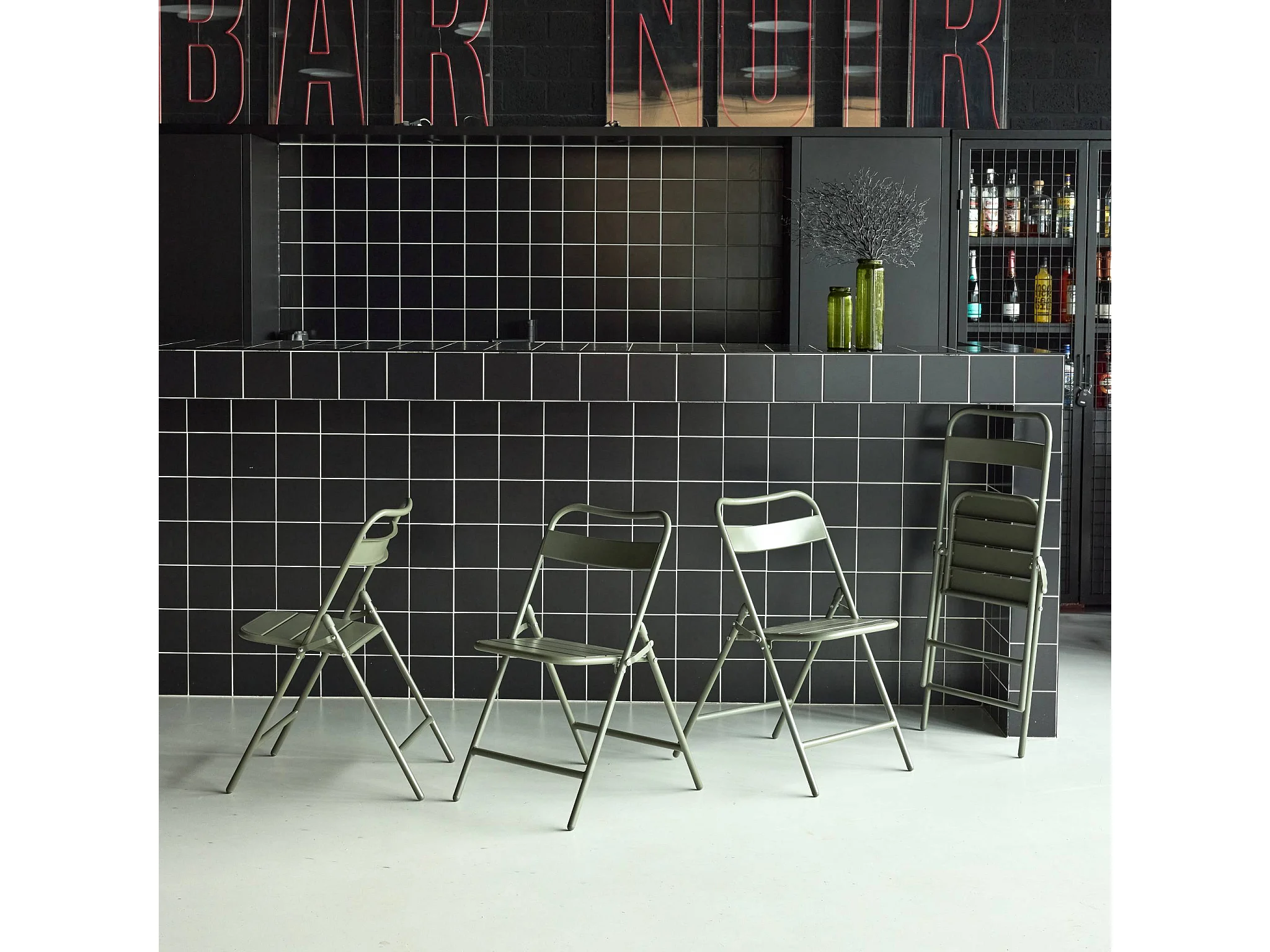 Lot de 4 chaises de jardin pliante acier kaki. 44.3 x 49 x 79.7 cm - Amélia