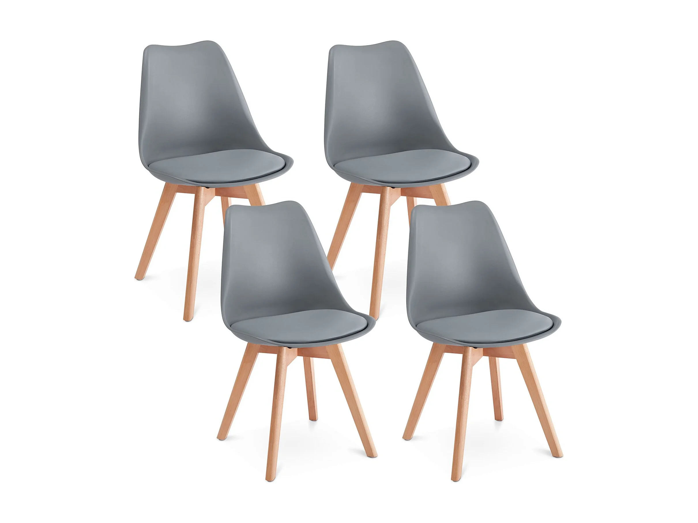 Lot de 4 chaises de salle à manger ABBY style scandinave gris clair design nordique piètement bois massif, siège coque rembourré