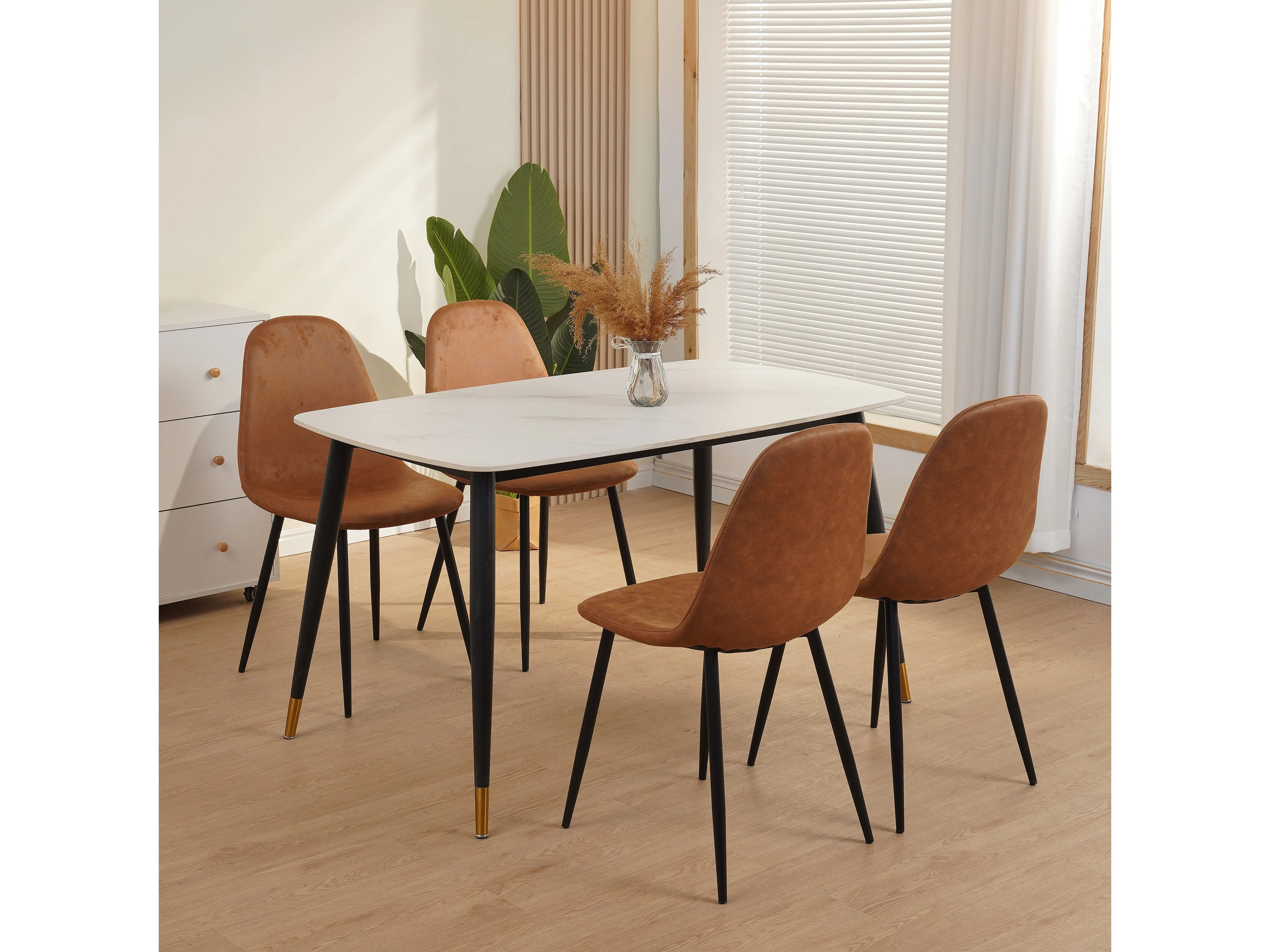 Lot de 4 chaises de salle à manger, Avec pieds en métal, marron