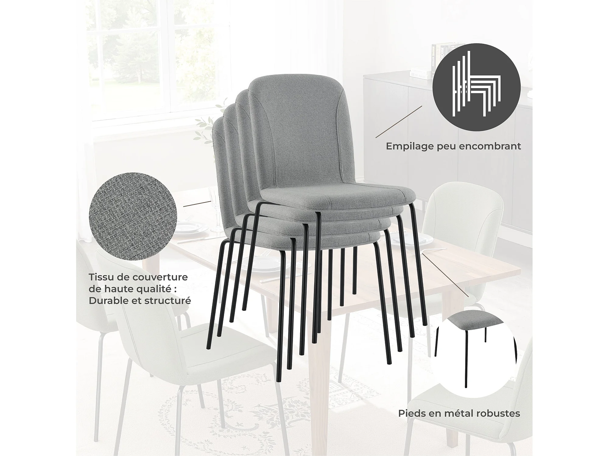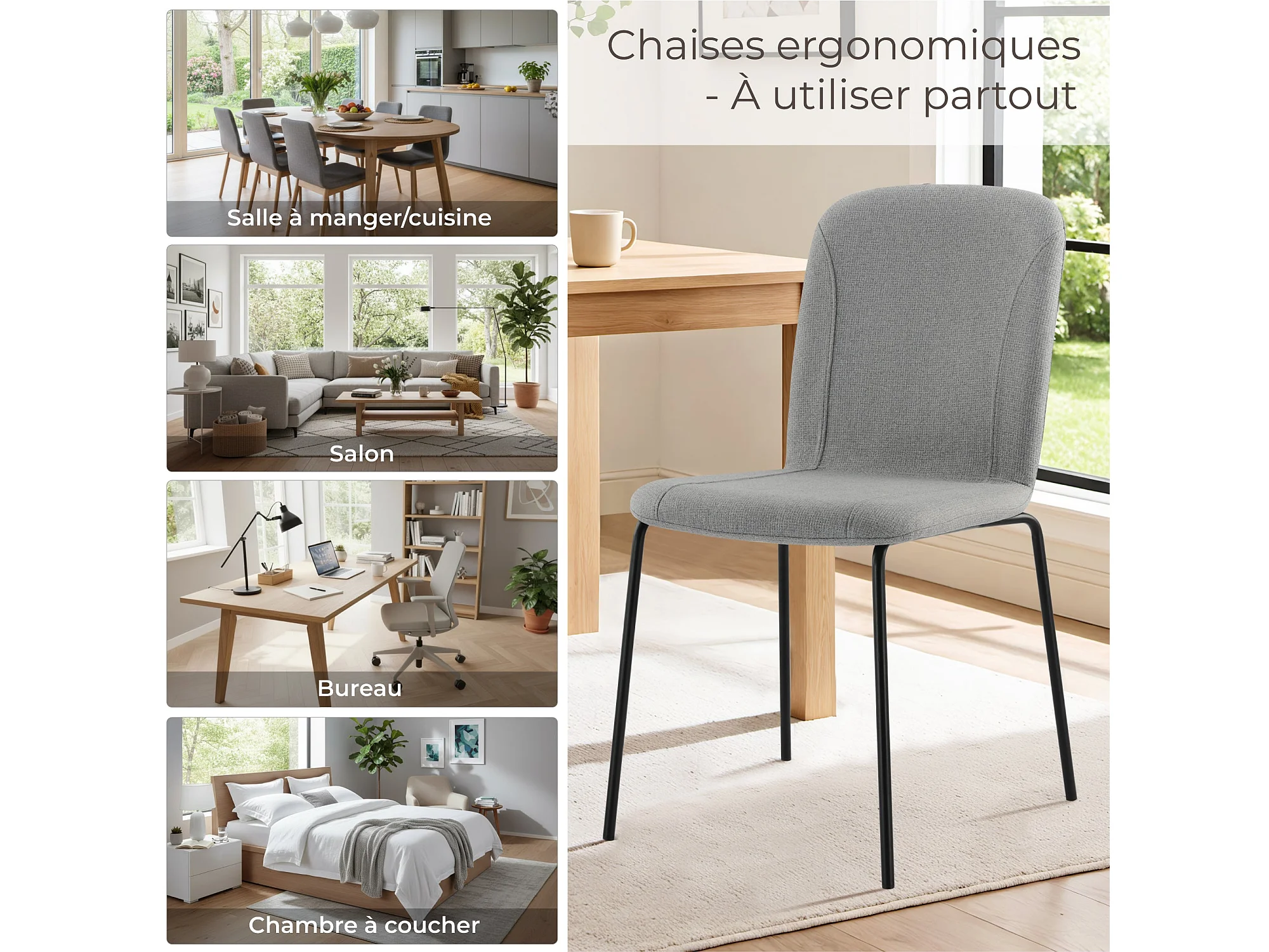 Lot de 4 Chaises de Salle à Manger, Chaise Scandinave, Chaise Moderne Idéal pour Salle à Manger,Salon,Cuisine Gris clair