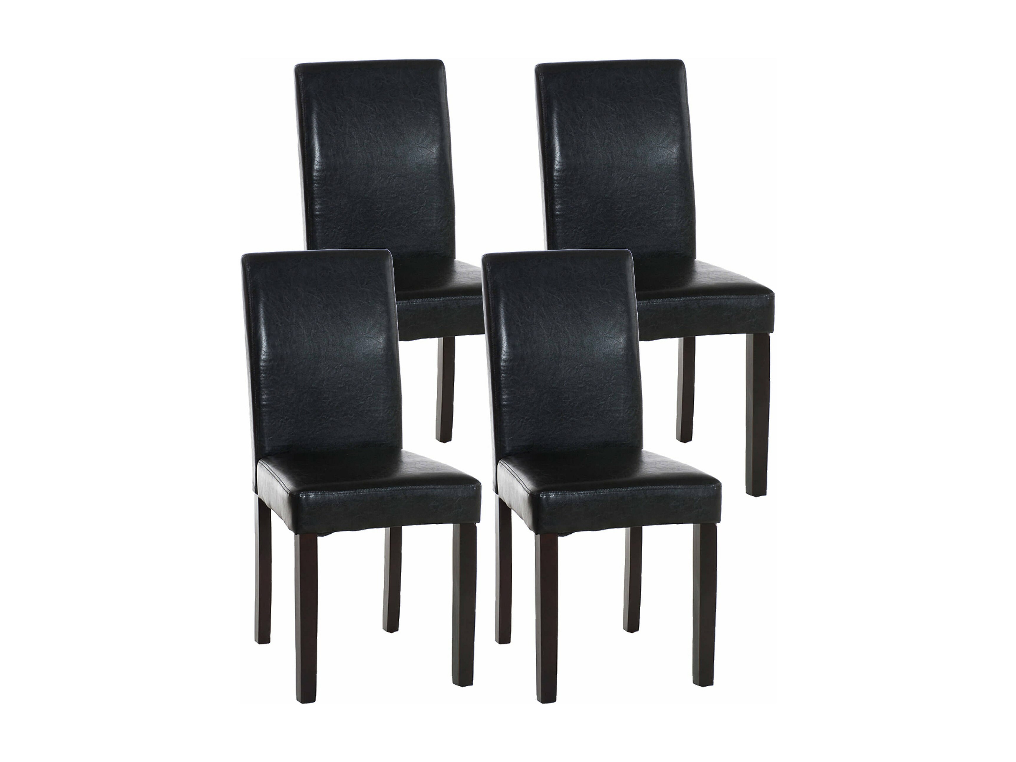 Lot de 4 chaises de salle à manger design moderne confortable en PVC noir et pieds en bois marron foncé 10_0001758